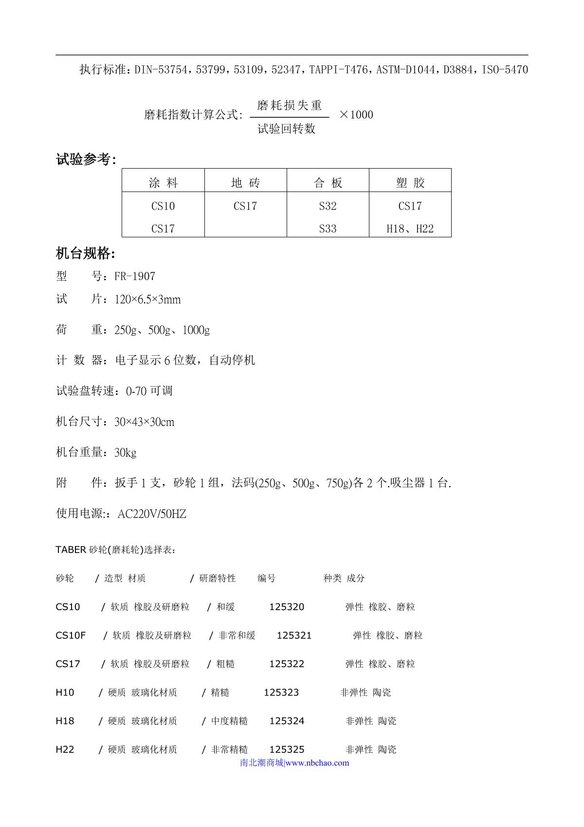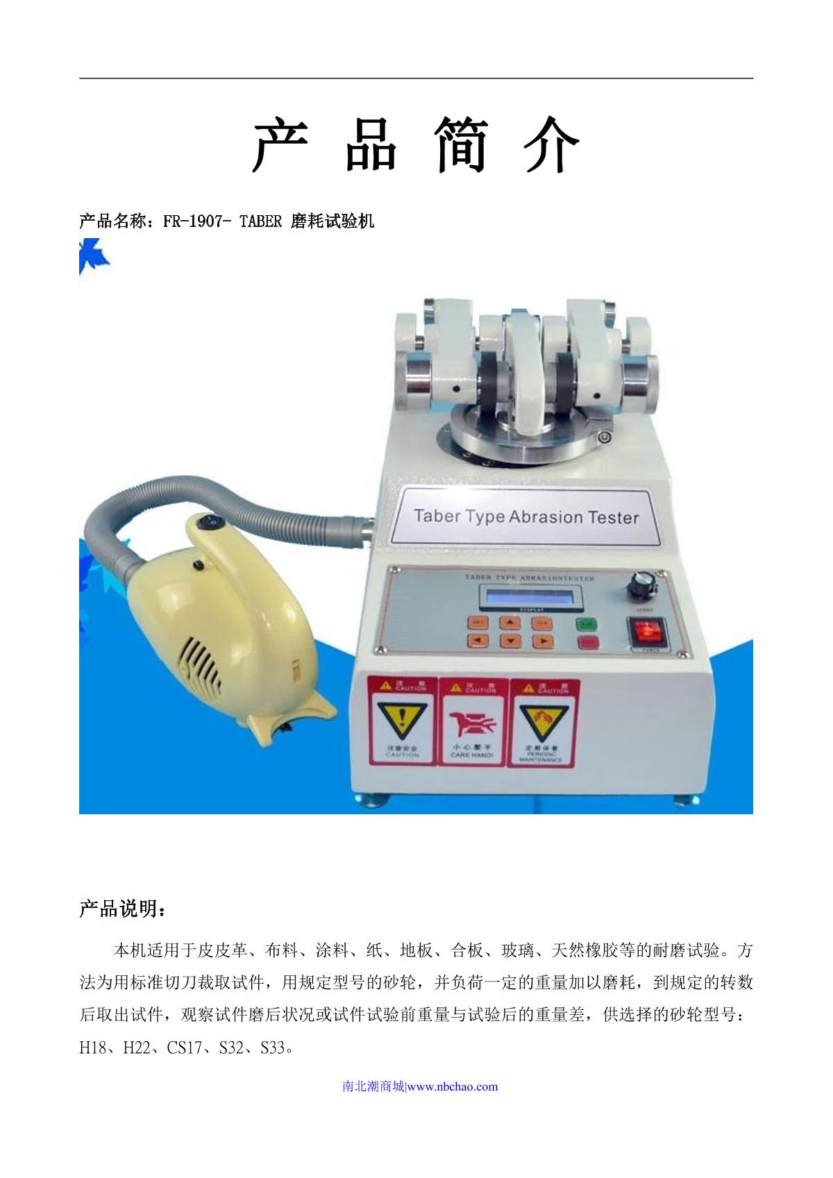 FARI FR-1907 TABER Abrasion Tester120×6.5×3mm250g、500g、1000gElectronic display 6 digits, automatic stop¥9500.0SE -
