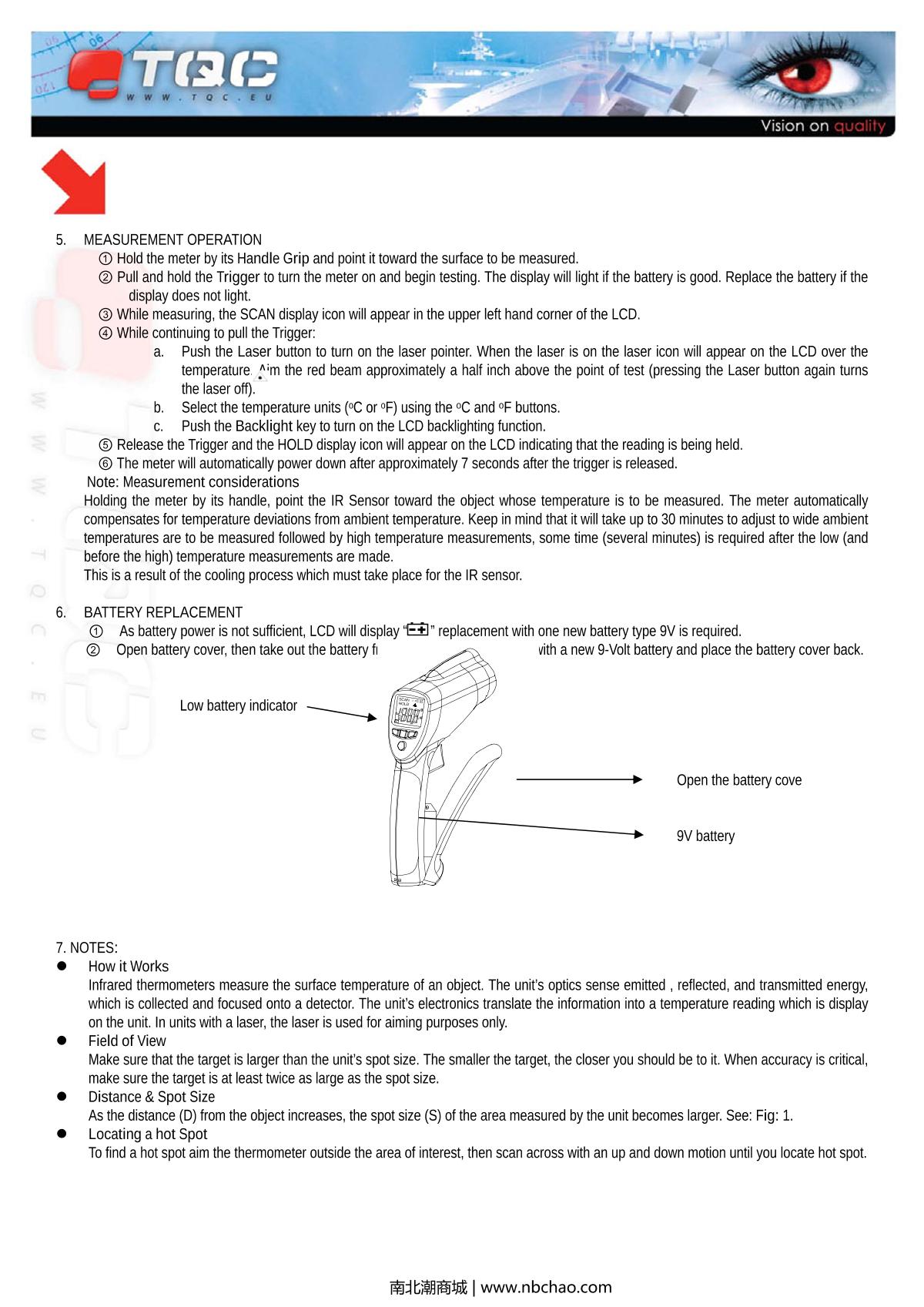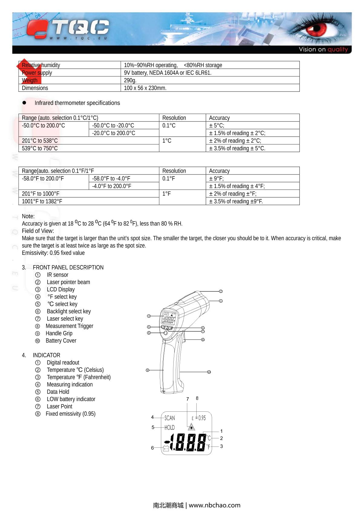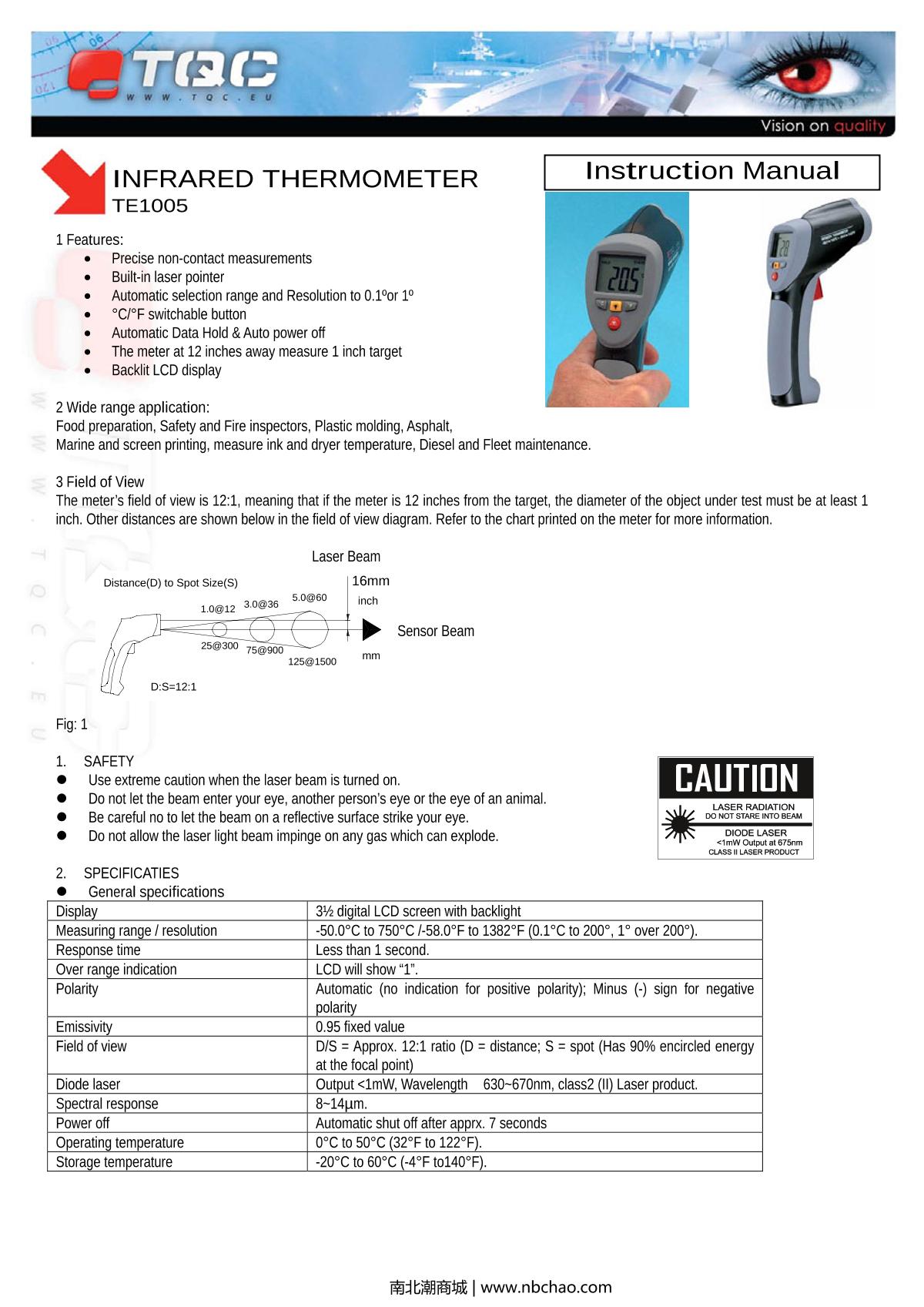 TQC sheen TE1005 Infrared Thermometer Manual,OI
