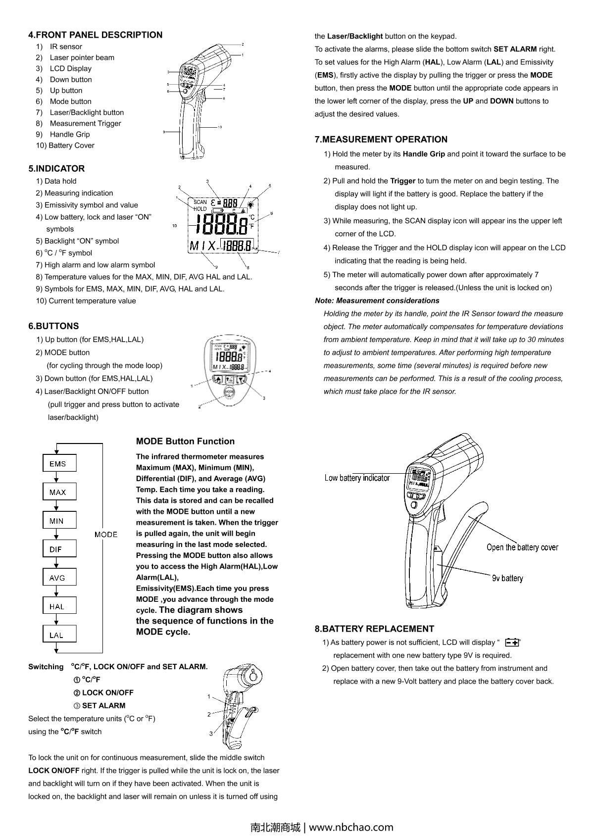 - 5CEM DT-8889H Long-distance Industrial Infrared Thermometer Manual
