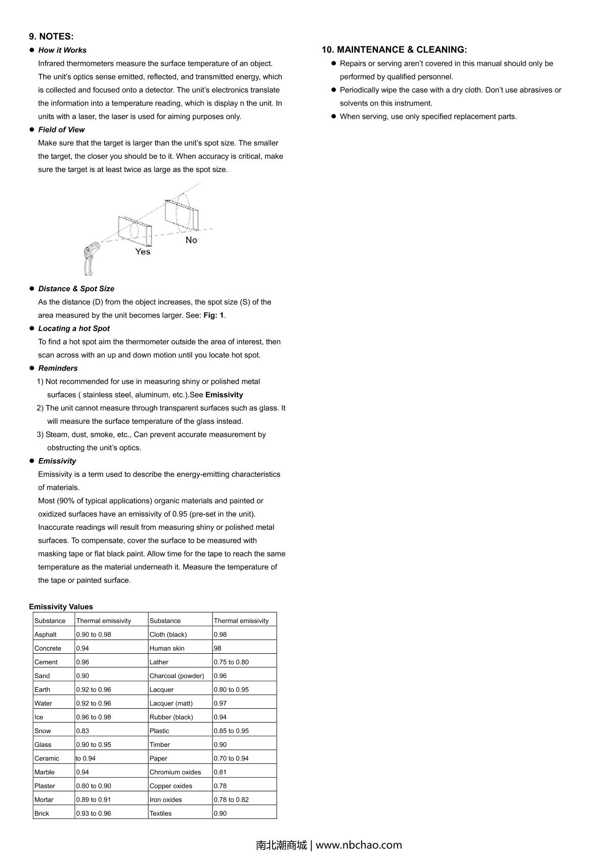 - 1CEM DT-9862 Professional high temperature infrared thermometer Manual