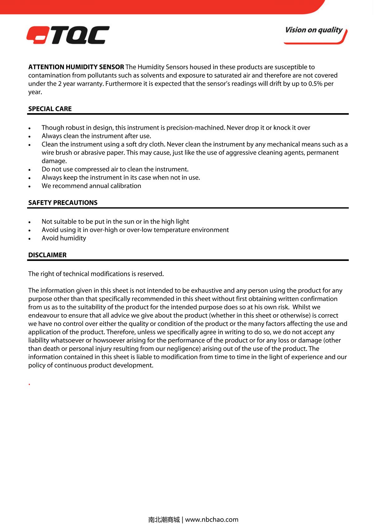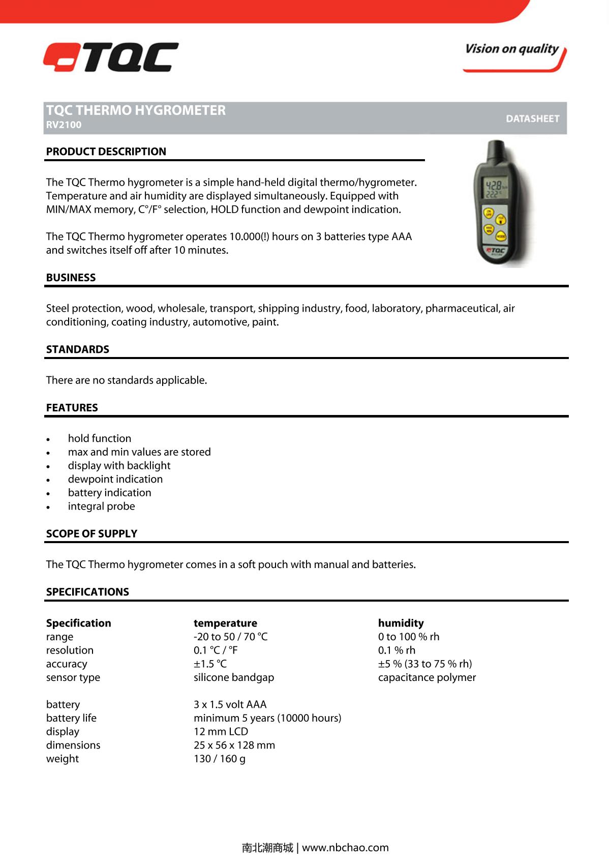 TQC sheen RV2100 Thermohygrometer brochure