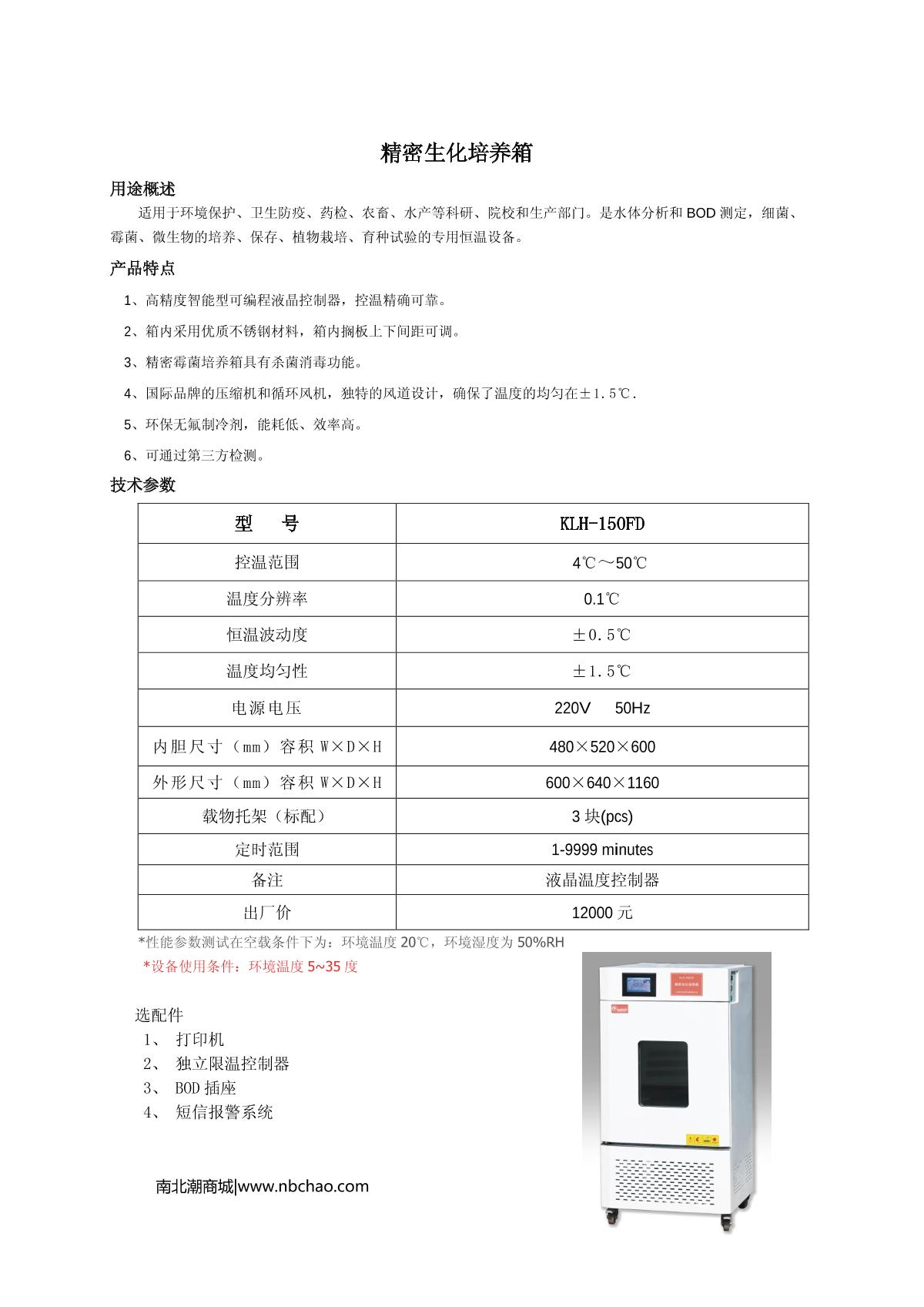 Keelrein KLH-150FD Precision Biochemical Incubator (LCD screen) brochure