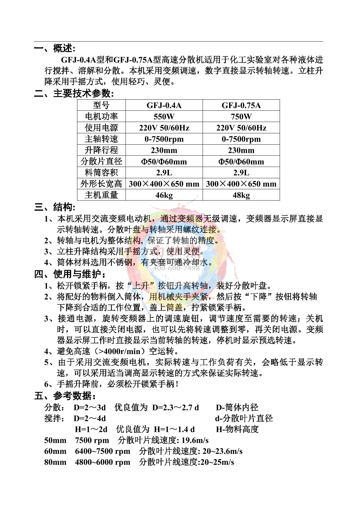 - 3Moderner GFJ-0.4A High Speed Disperser Manual