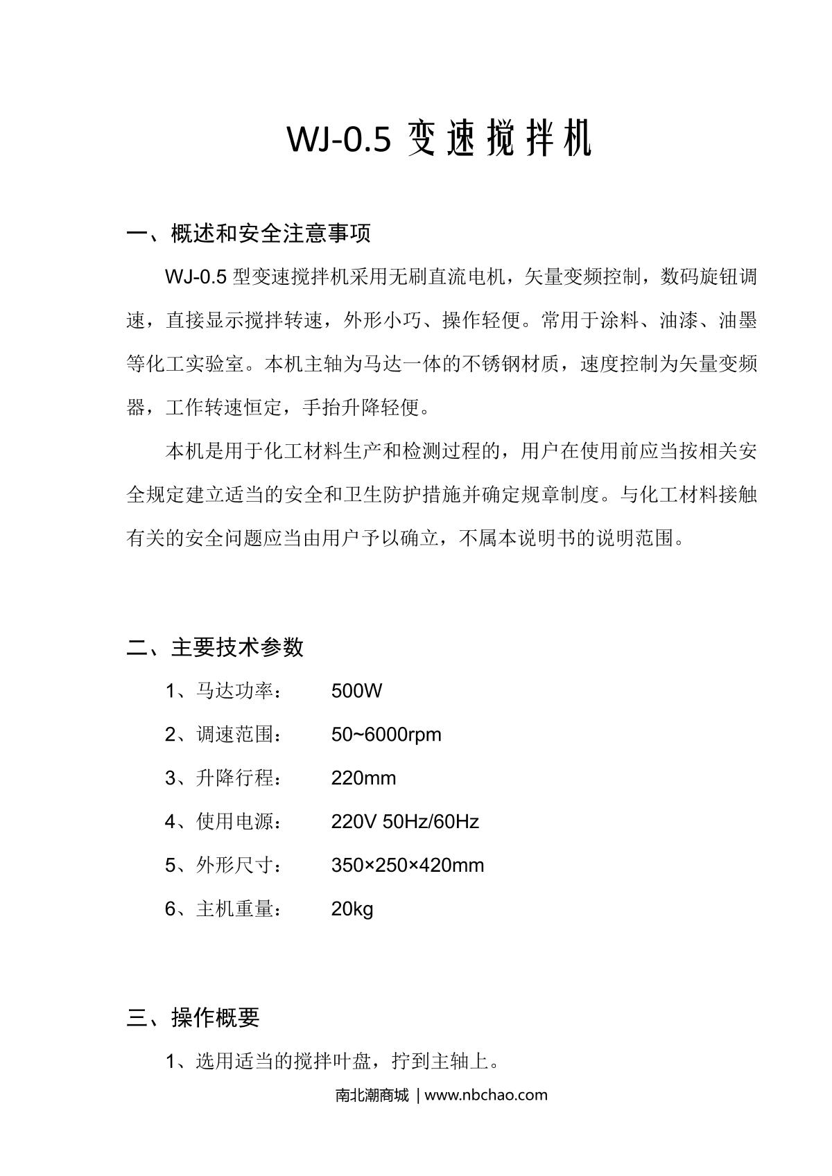 Moderner WJ-0.5 Variable Speed Stirrer Manual,OI