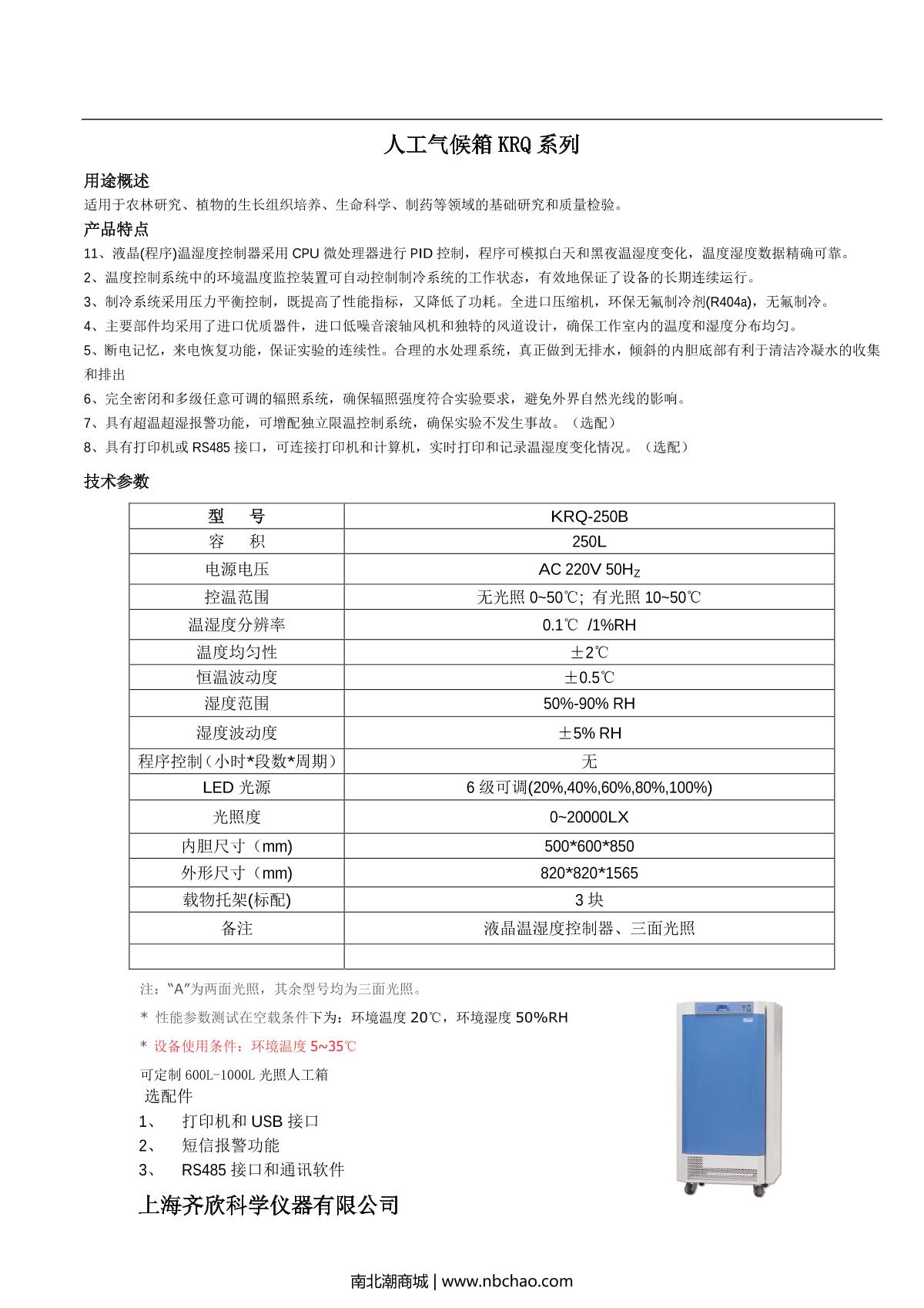 Keelrein KRQ-250B Artificial Climate Chamber brochure