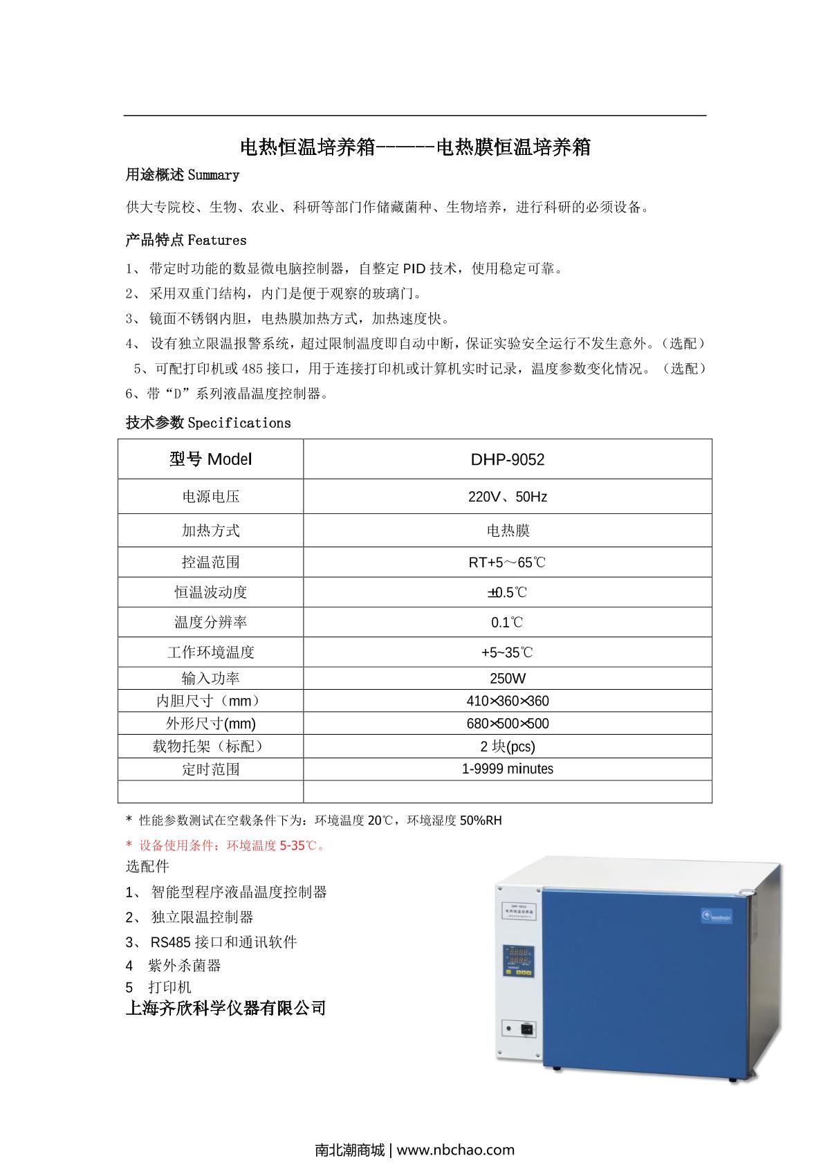 Keelrein DHP-9052 Electrothermal Thermostatic Incubator brochure