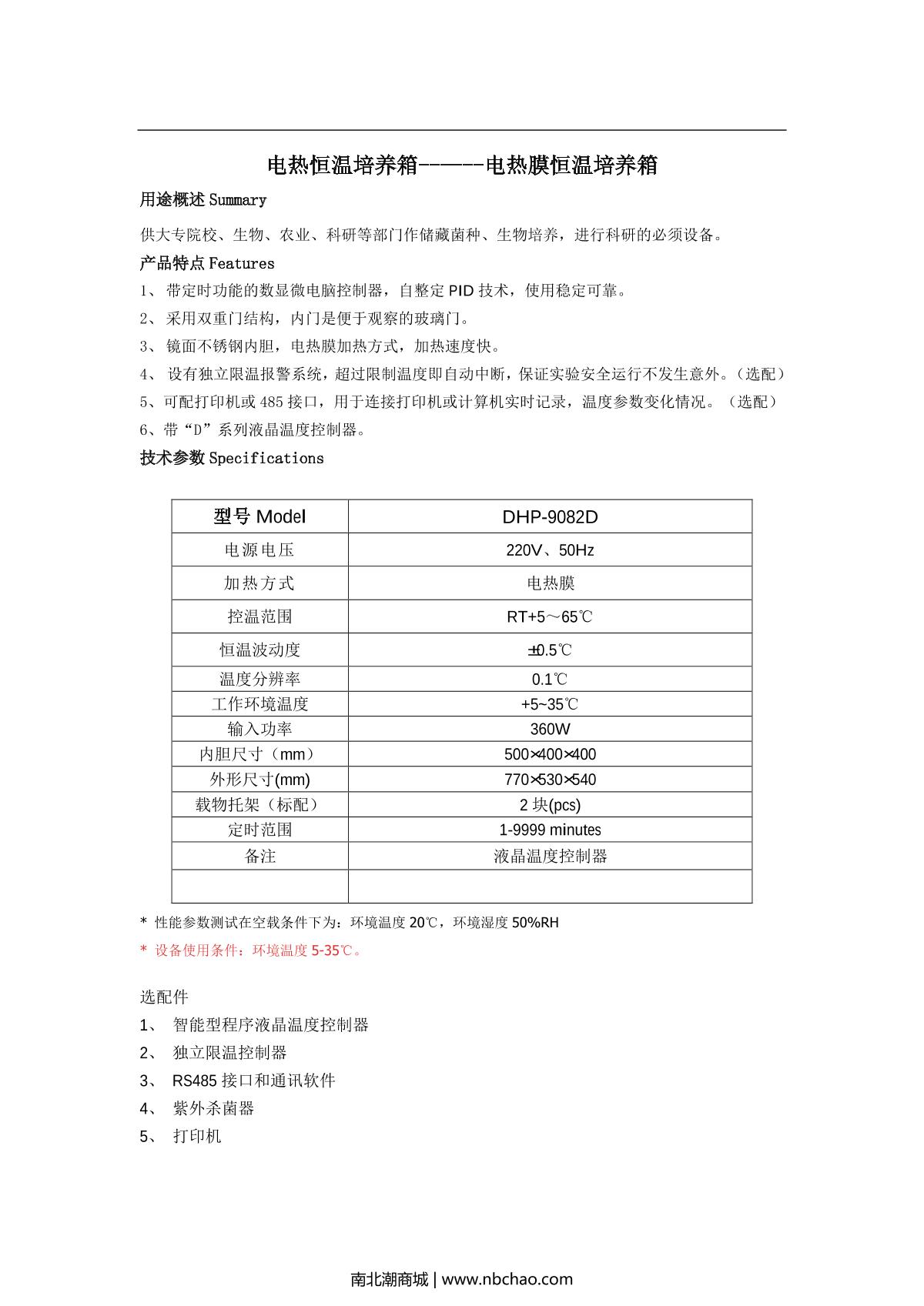 - 7HuiTai DHP-9052N Electric Thermostatic Incubator brochure