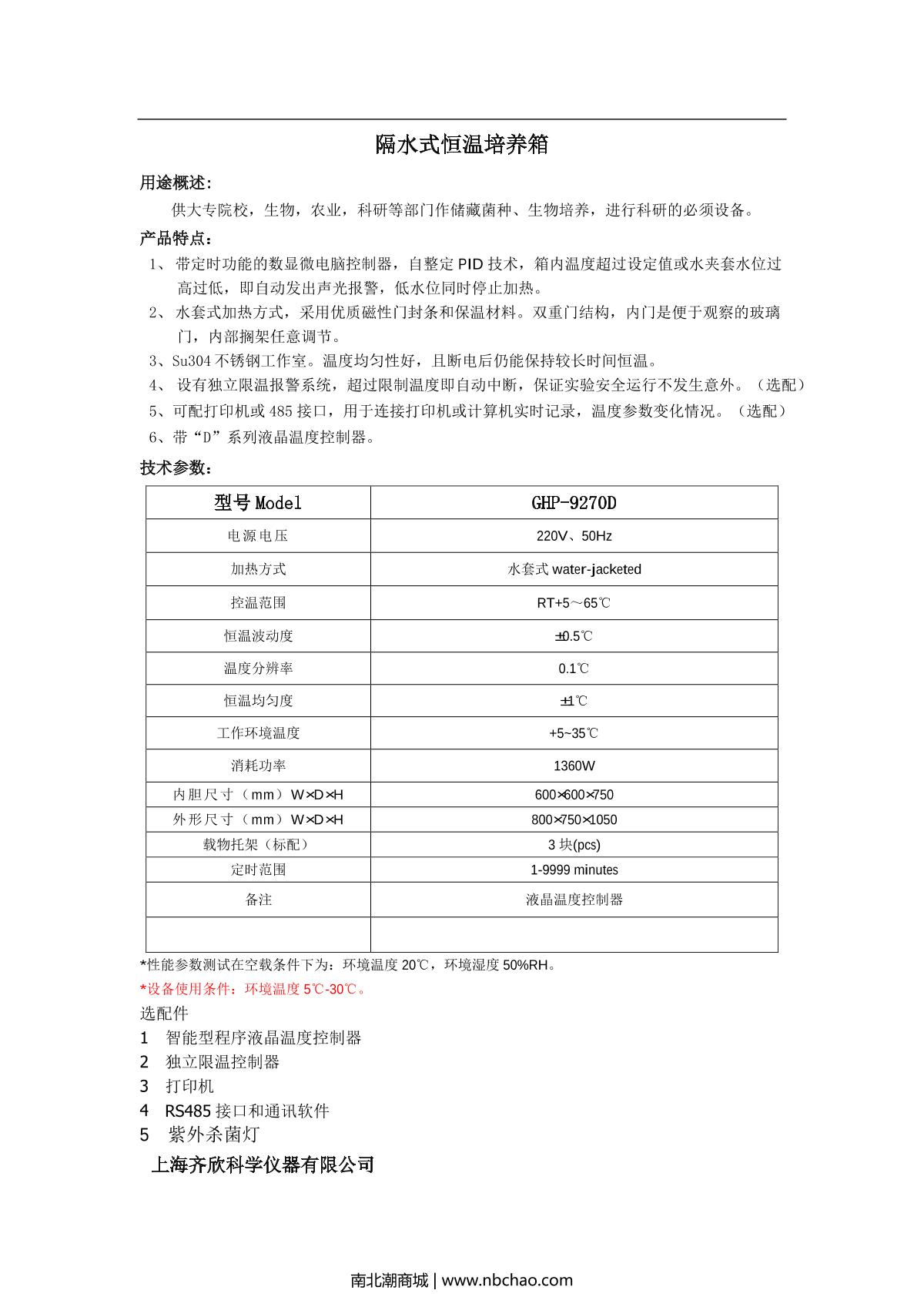 Keelrein GHP-9270D Waterproof Incubator brochure