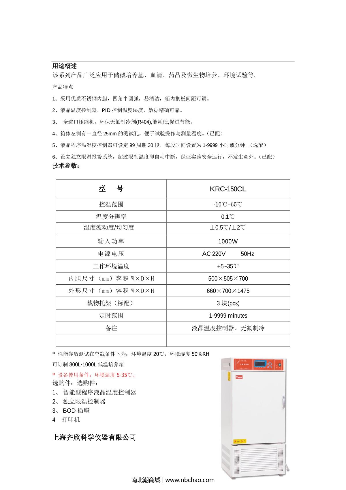 Keelrein KRC-150CL Low temperature Incubator brochure