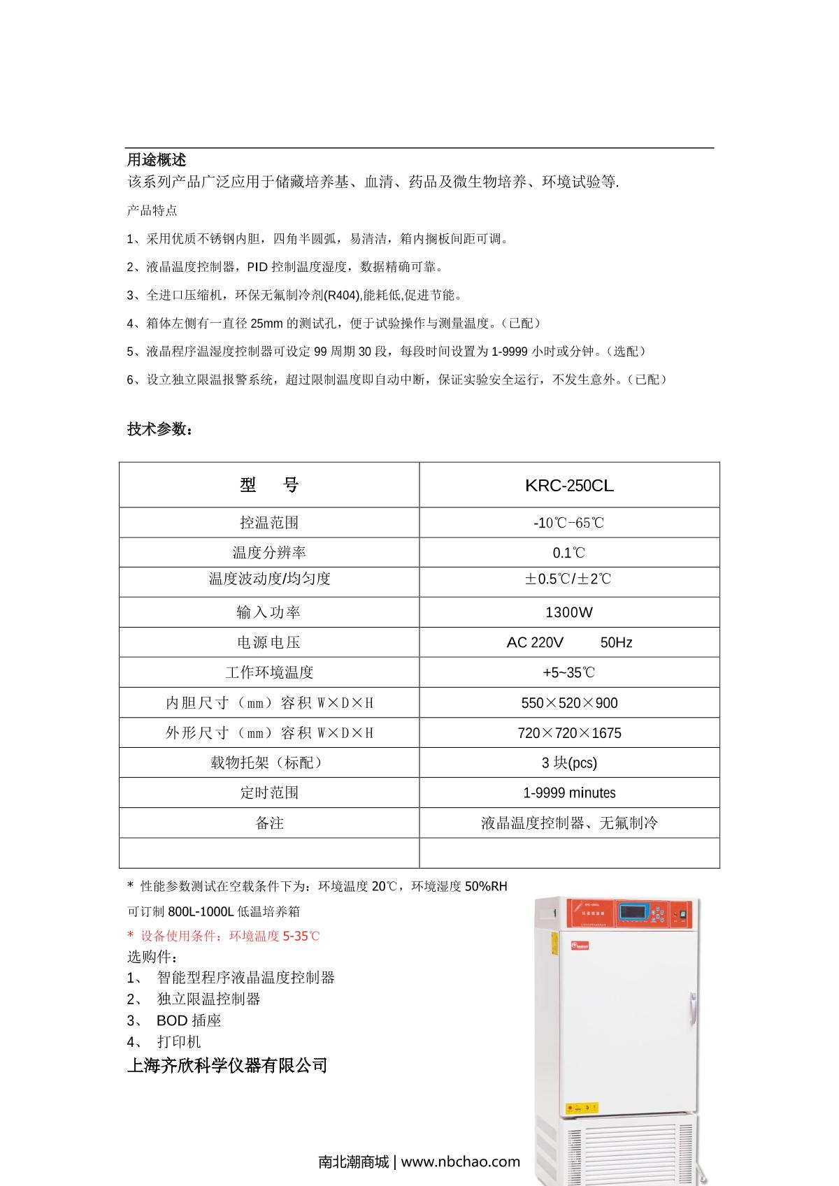 Keelrein KRC-250CL Low temperature Incubator brochure