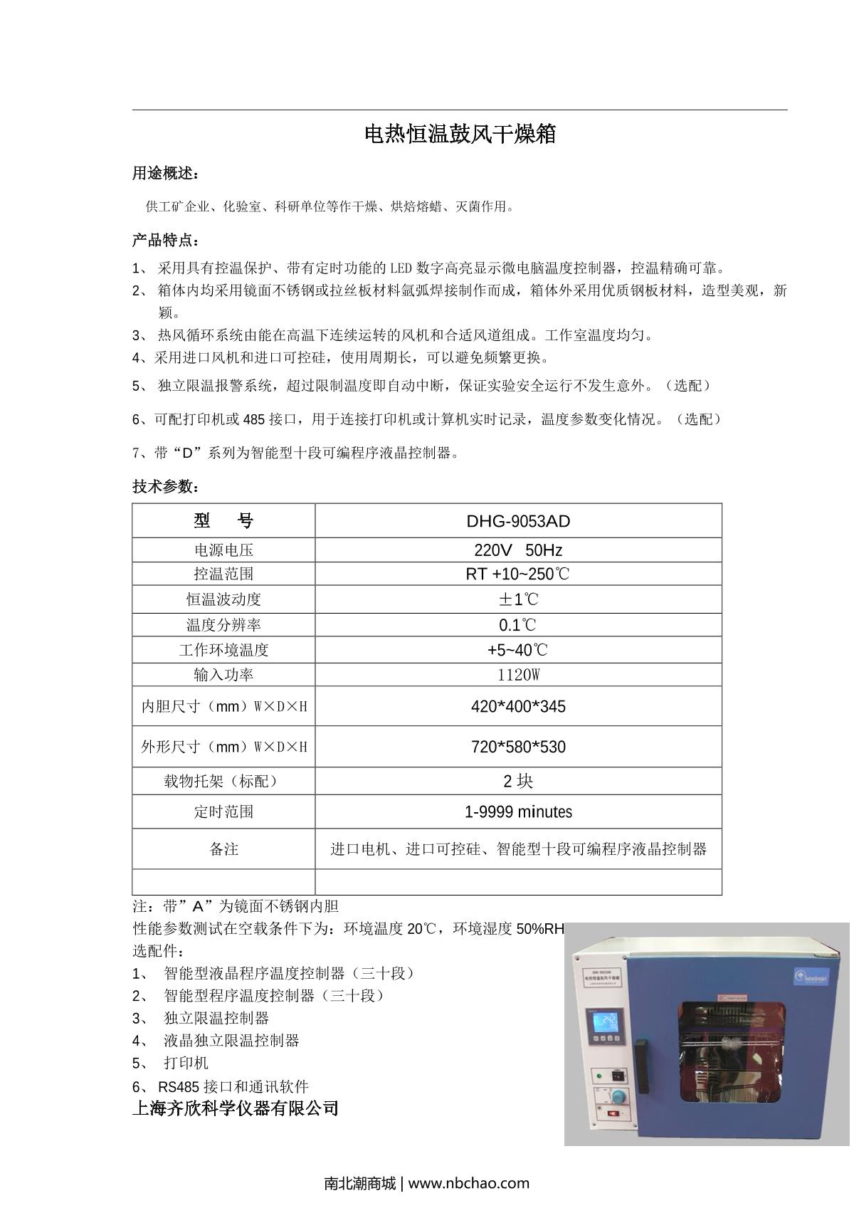 Keelrein DHG-9053AD Desktop Forced Air Drying Oven brochure