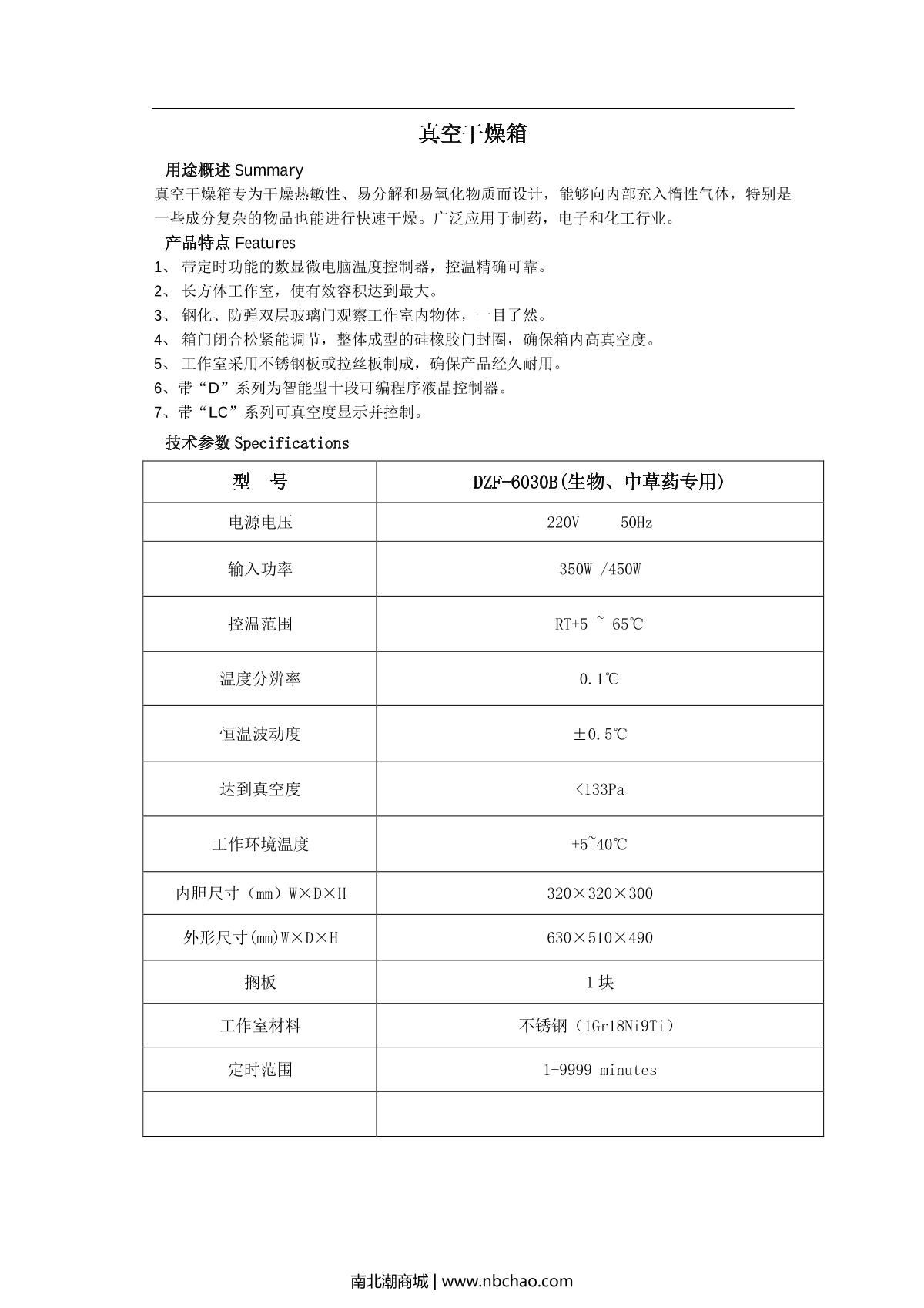 - 7BoZhen DZF-6250 Vacuum Oven brochure