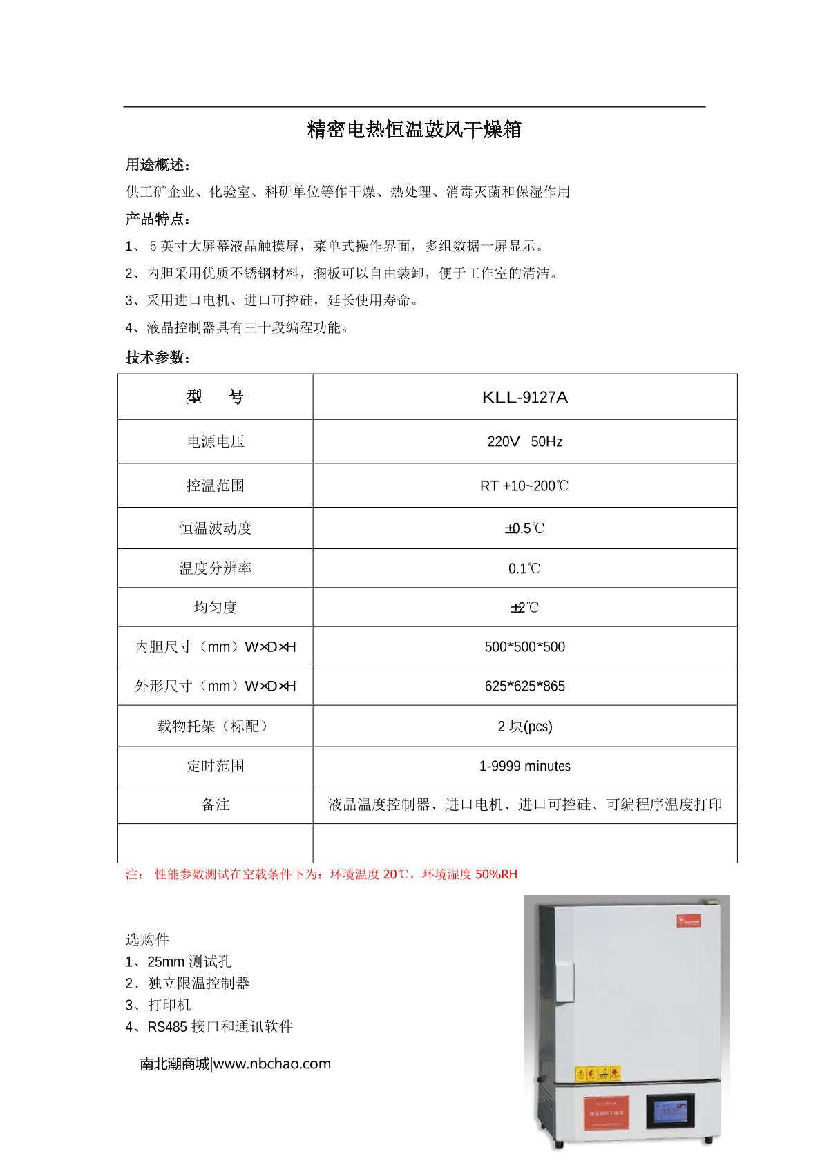 Keelrein KLL-9127A Vertical precision Forced Air Drying Oven brochure