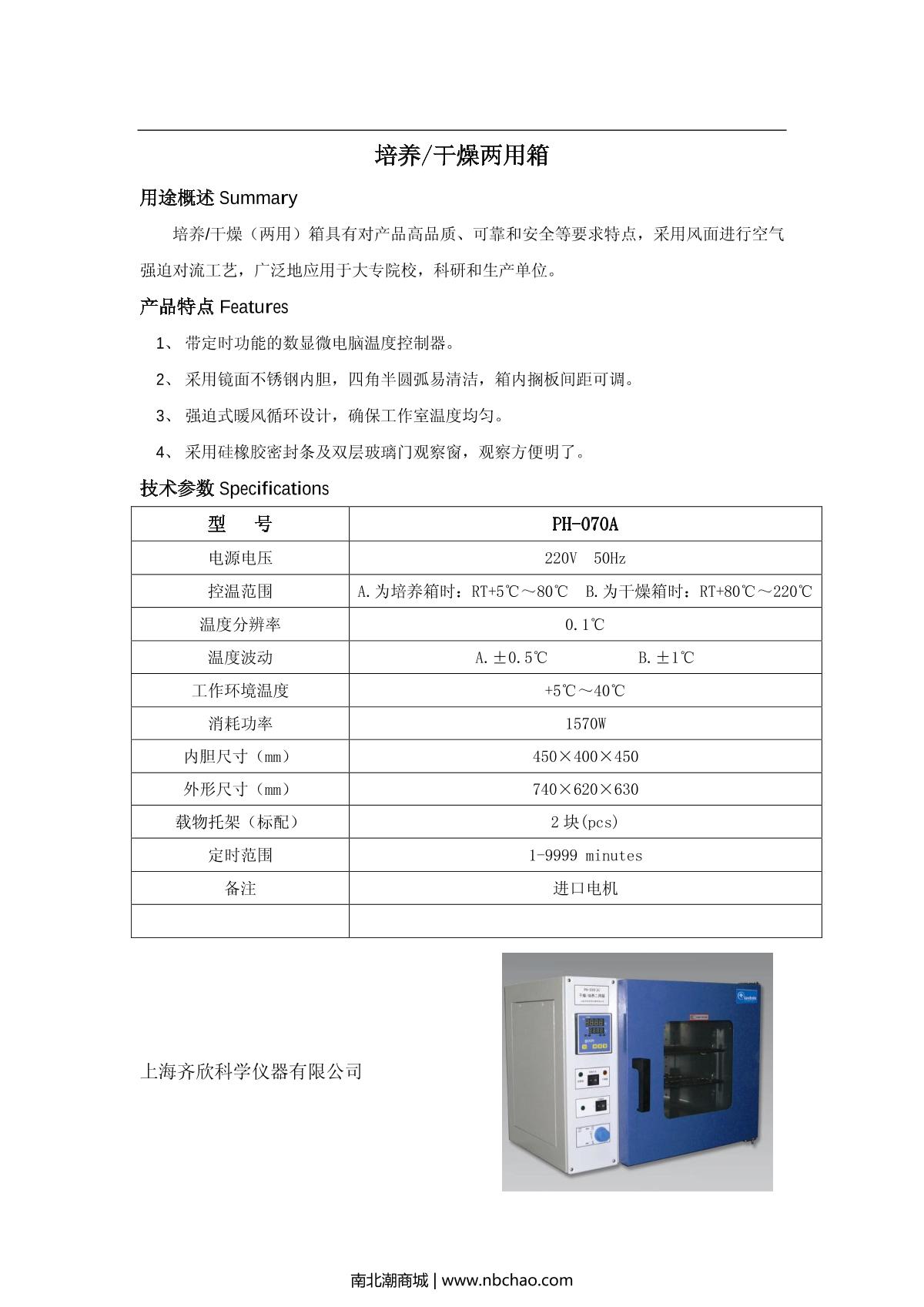 Keelrein PH-070A Incubator/Drying Oven (dual-use) brochure