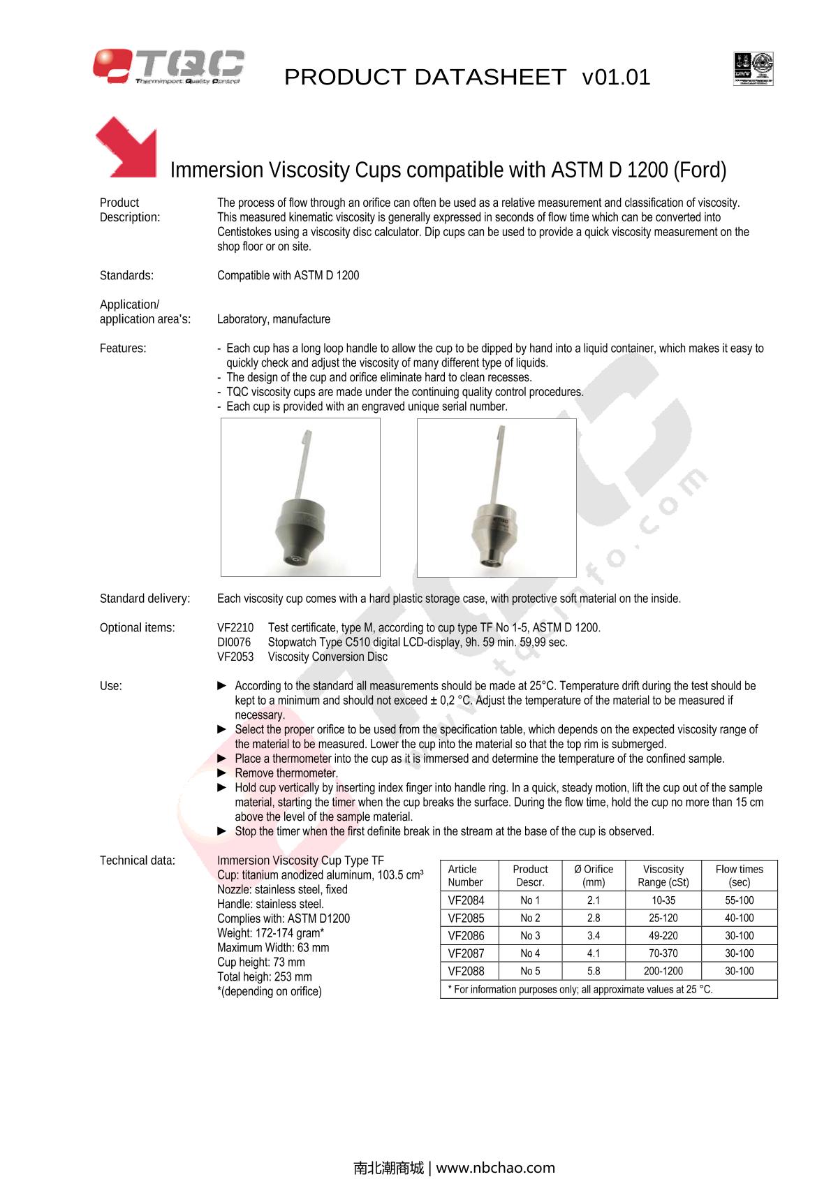 - 9TQC sheen VF2222 Immersion Viscosity Cup Manual