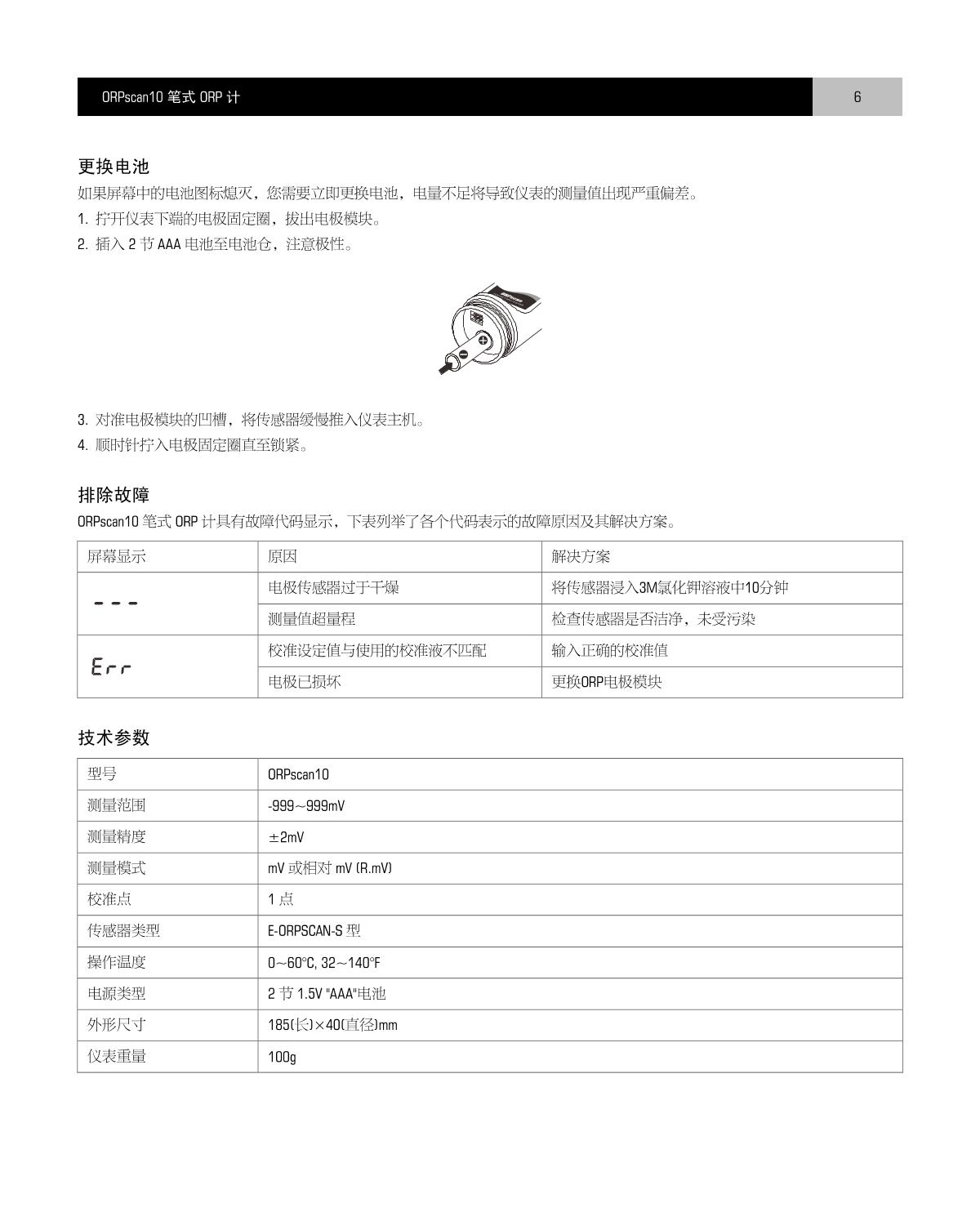Bante E-ORPscan-S ORP electrode Manual,OI