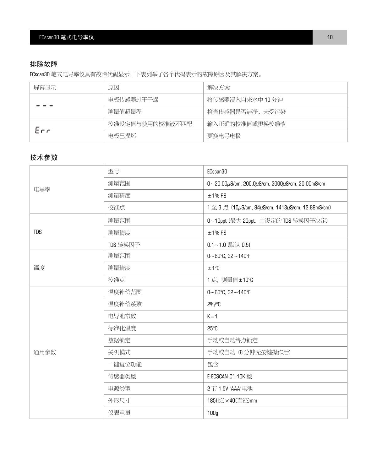 Bante ECscan30 Pen conductivity meter Manual,OI