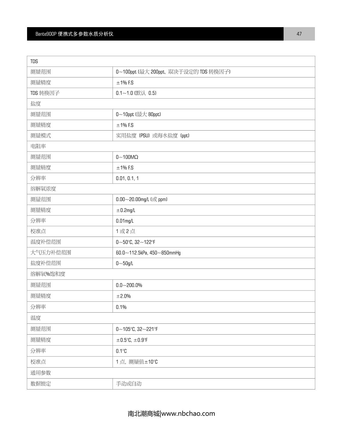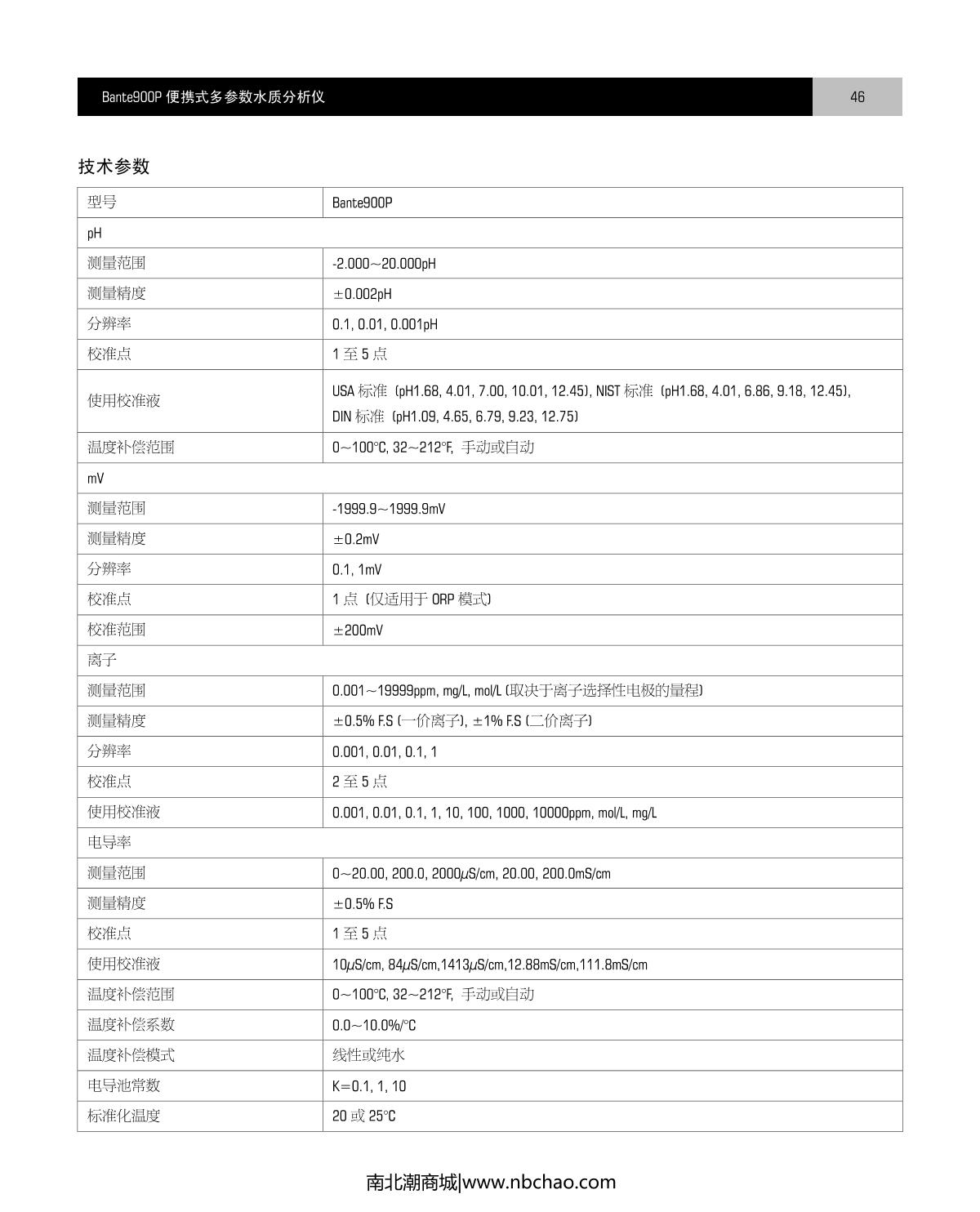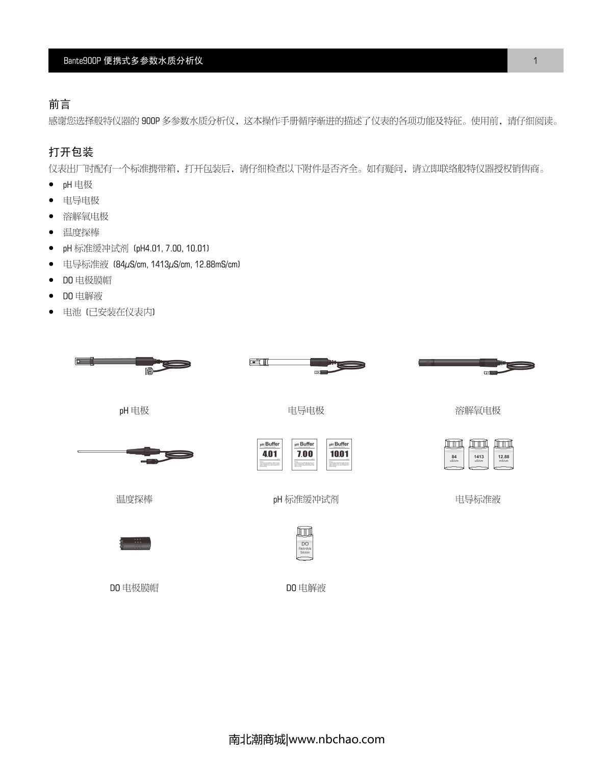 Bante Bante900P-CN Portable Multi-Parameter Water Quality Meter Manual,OI