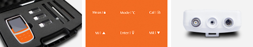 • 1 to 5 point key calibration, automatic identification of pH standard buffer.