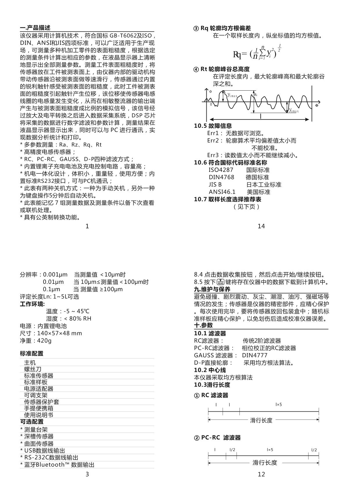 - 1PoRuiKe BC-110 Surface roughness meter Manual