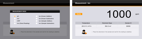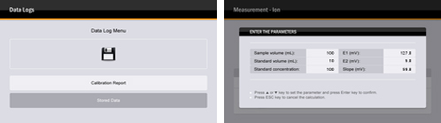 • Optional ion measurement methods, including direct reading method, known addition method, known subtraction method, sample addition method and sample subtraction method.