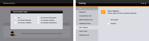 • Optional ion measurement methods, including direct reading method, known addition method, known subtraction method, sample addition method and sample subtraction method.