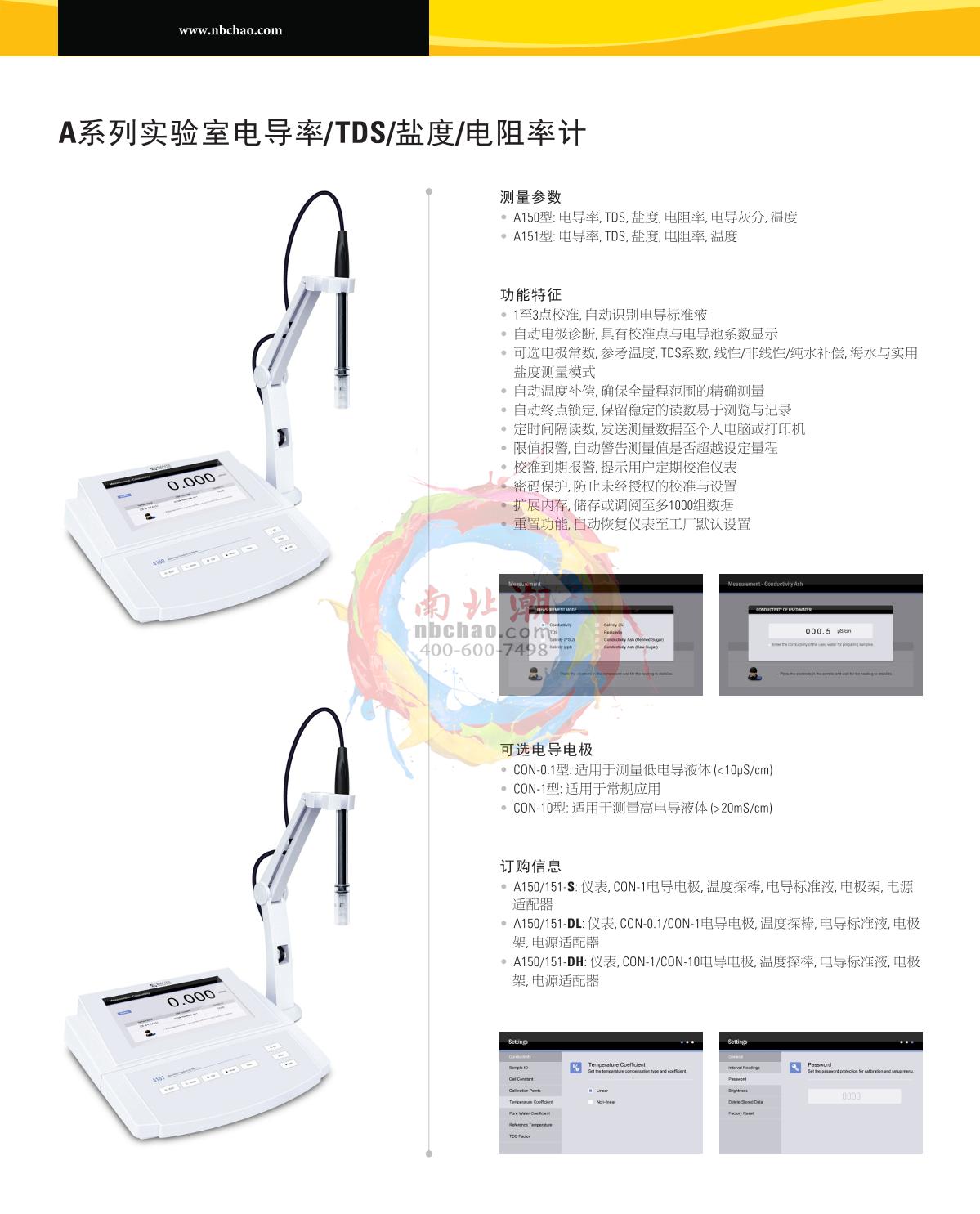 Bante A150-DH Laboratory conductivity /TDS/salinity/resistivity meter brochure