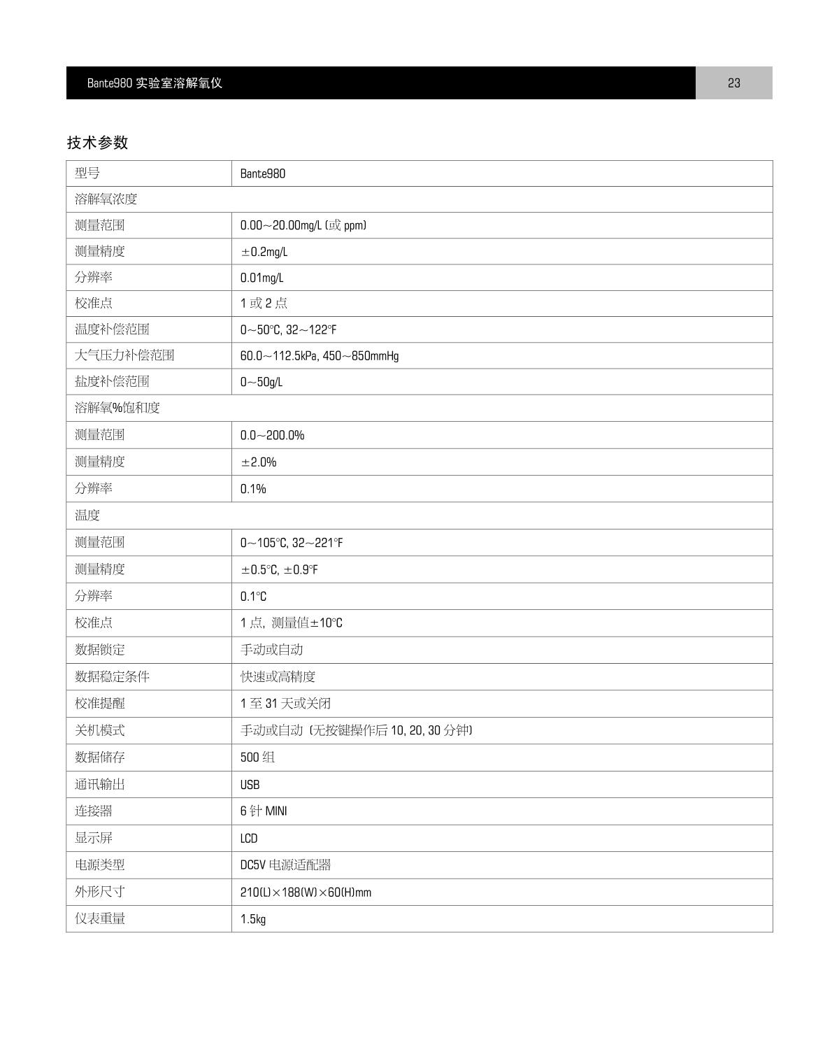 Bante Bante980 Laboratory Dissolved Oxygen Meter Manual,OI