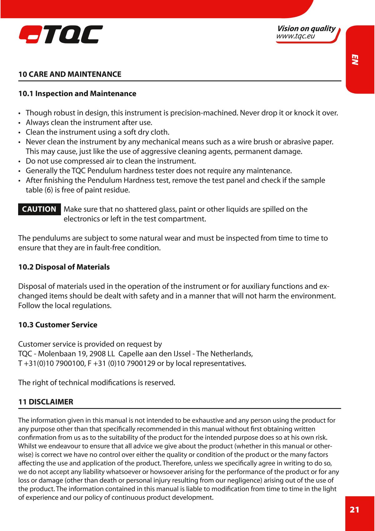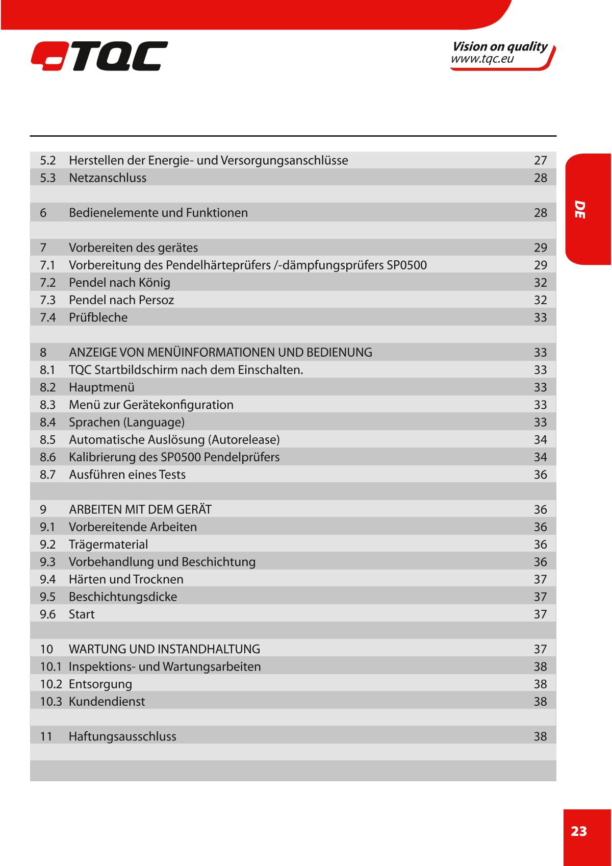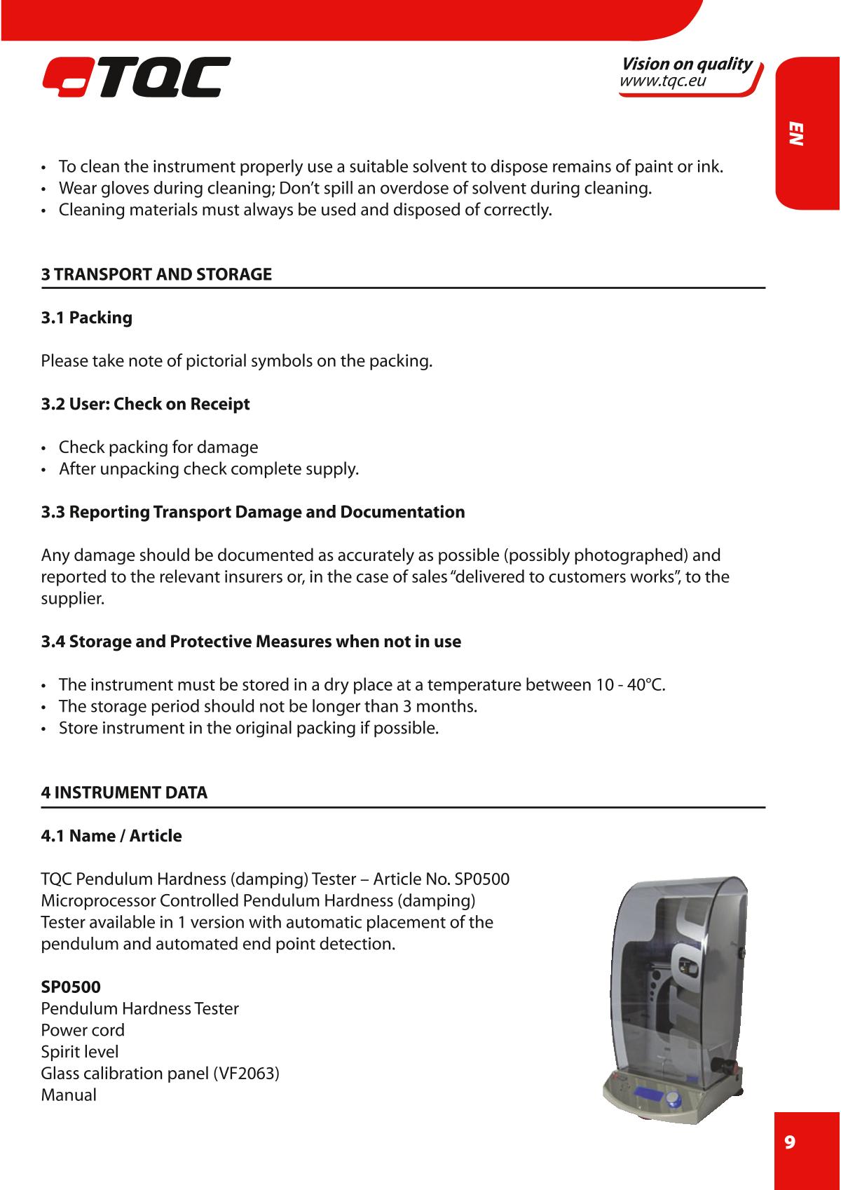 TQC sheen SP0500 Pendula Hardness Tester Manual,OI