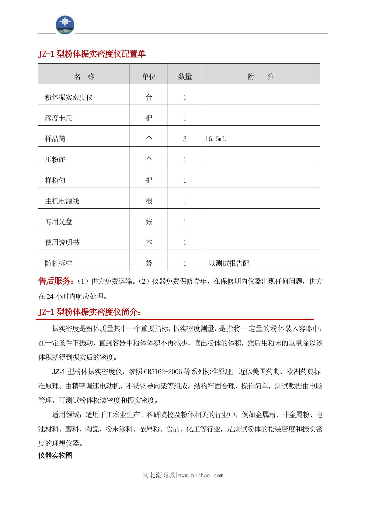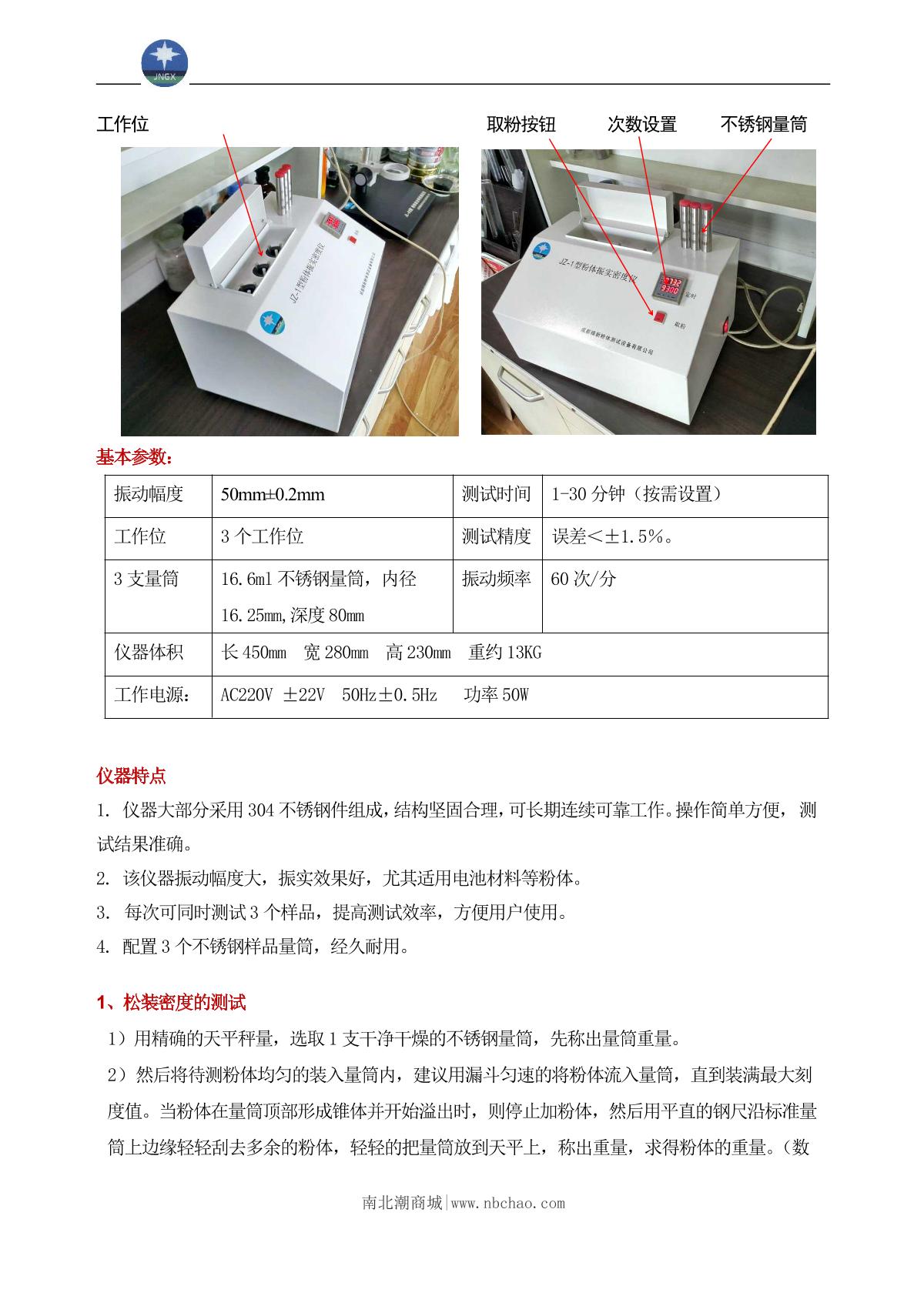 JingXin JZ-1 Powder Vibration Density Meter brochure