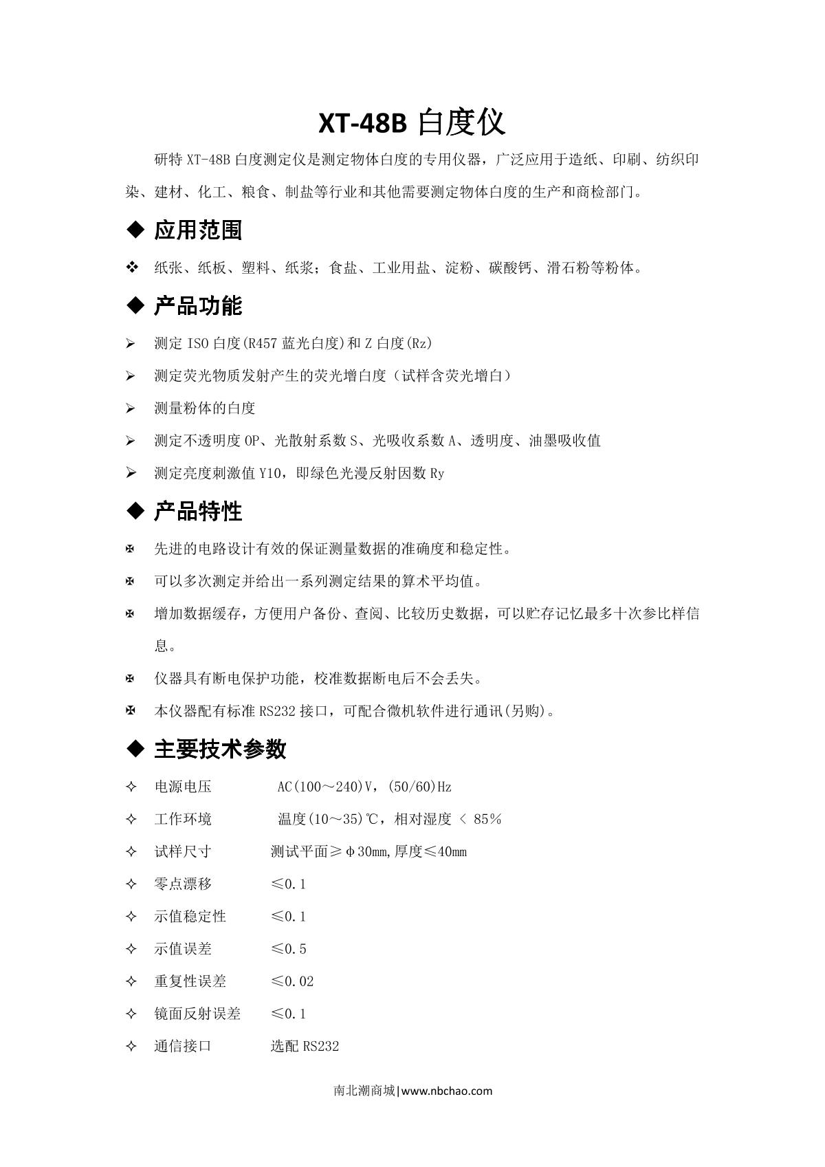 - 10QiWei WSB-1Y Whiteness meter (portable fluorescent) brochure