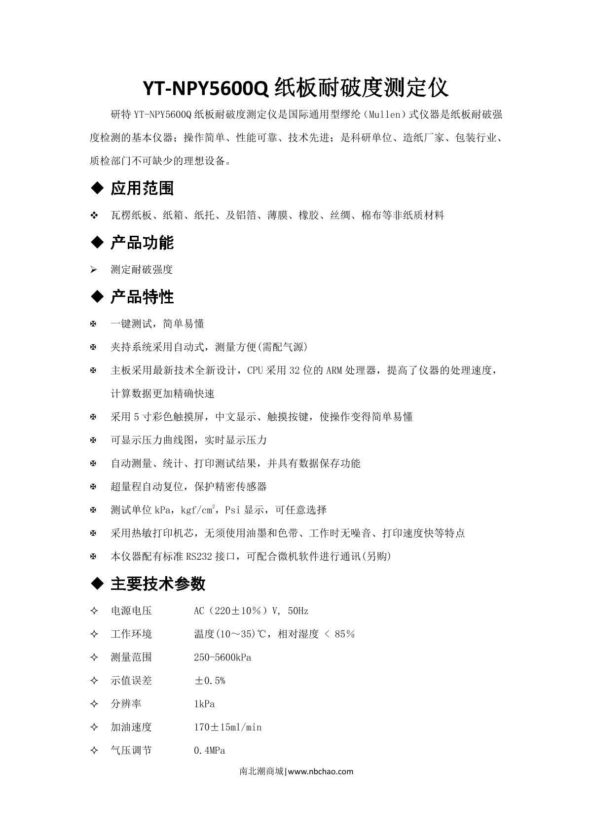 YanTe YT-NPY5600Q Paper Burst Strength Tester brochure