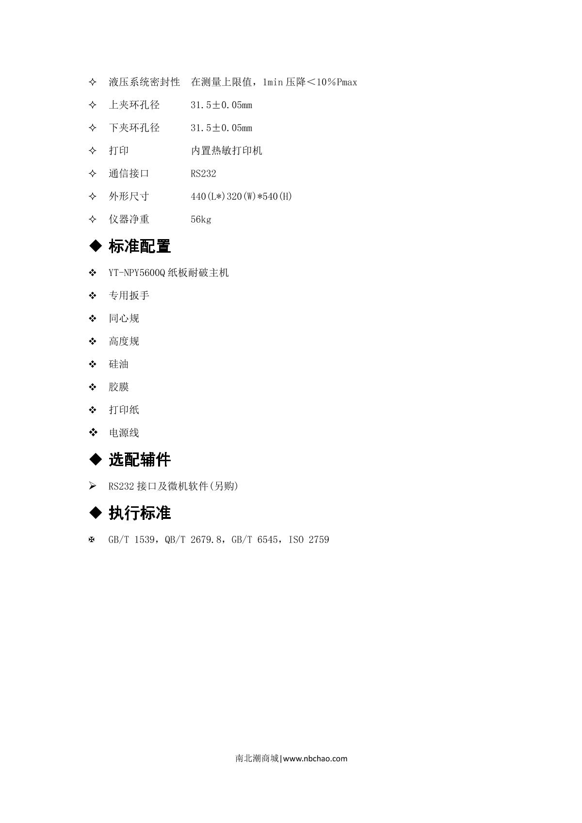 YANTE YT-NPY5600Q paper Burst Strength Tester Cardboard corrugated fibreboardAC(220±10%)V, 50HzTemperature (10~35) ℃, Relative Humidity < 85%250~5600kPa¥14630.0SE -