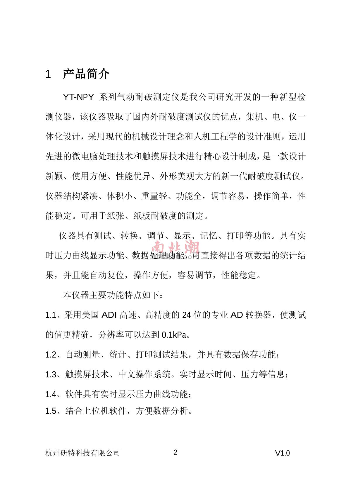 - 1YanTe YT-NPY5600Q Paper Burst Strength Tester Manual