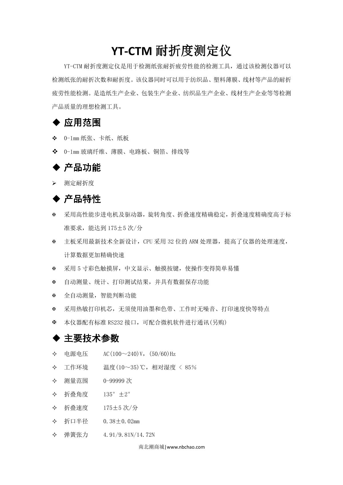 YanTe YT-CTM (touch screen) Folding Tester brochure