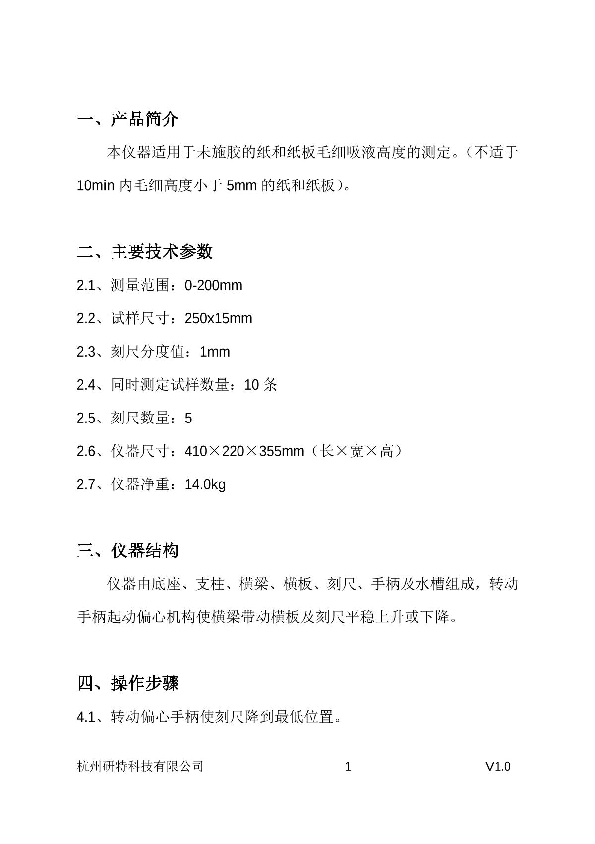 YanTe YT-XSL200 Paper Water Absorption Tester Manual,OI