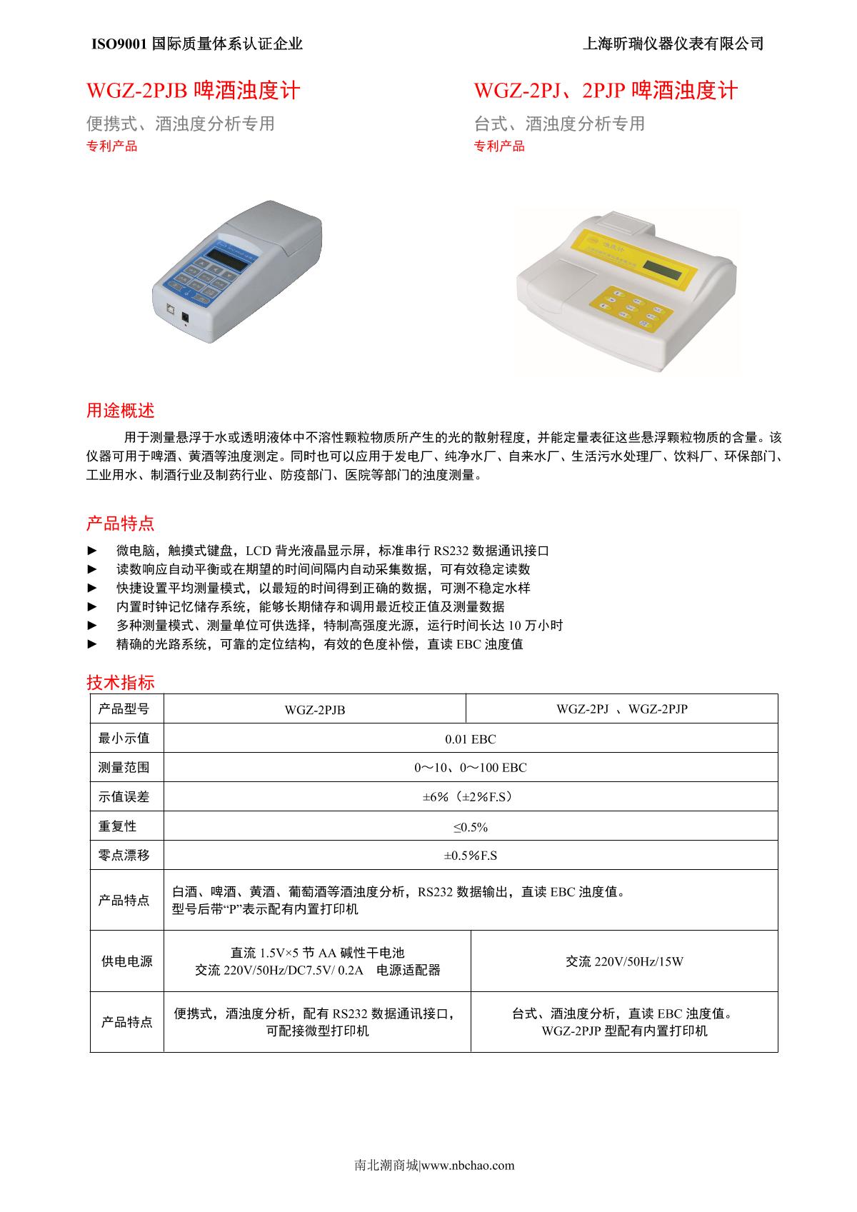 XinRui WGZ-2PJ Beer Turbidity Meter brochure