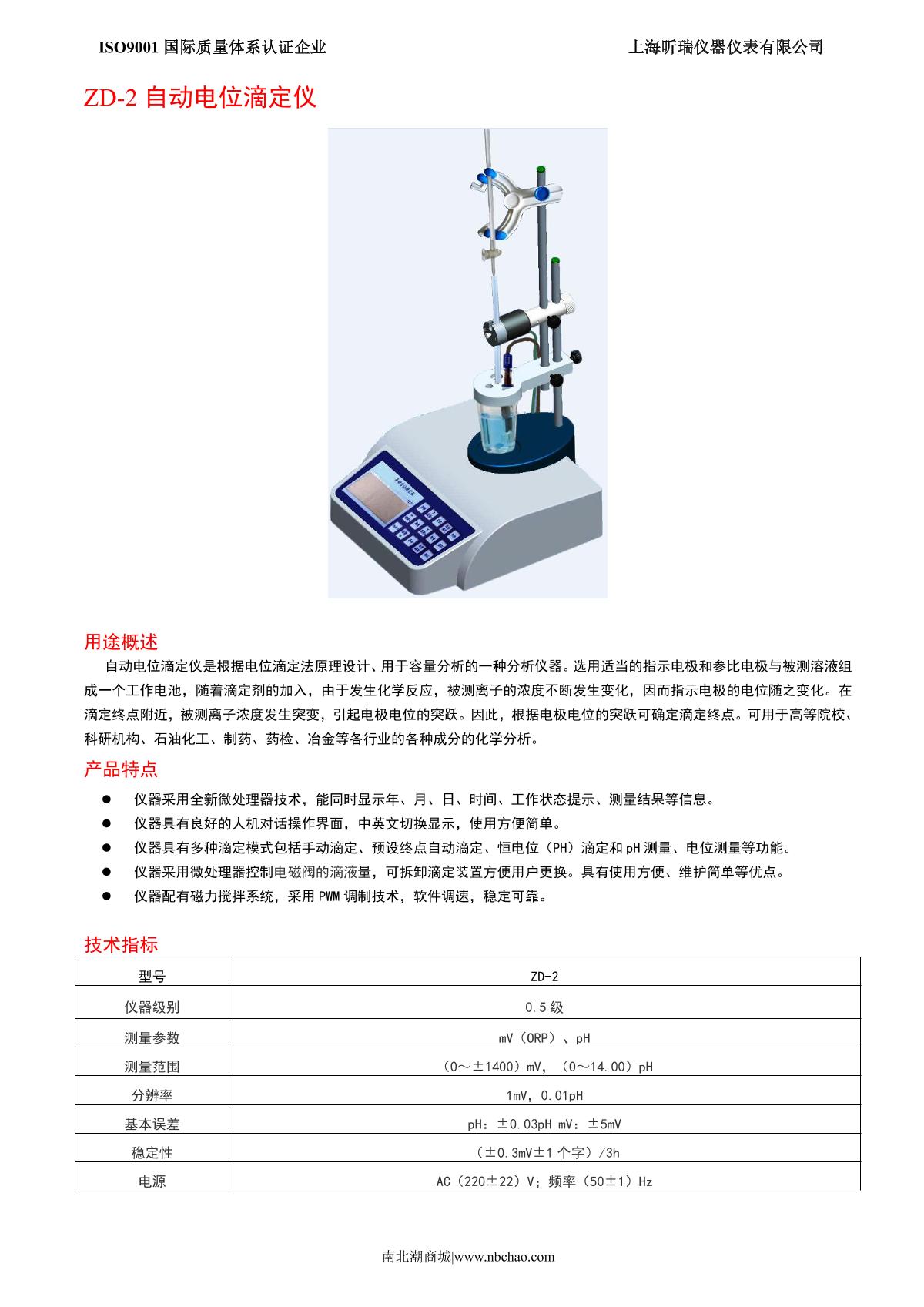 - 9XinRui ZD-3A Potentiometric titrator brochure