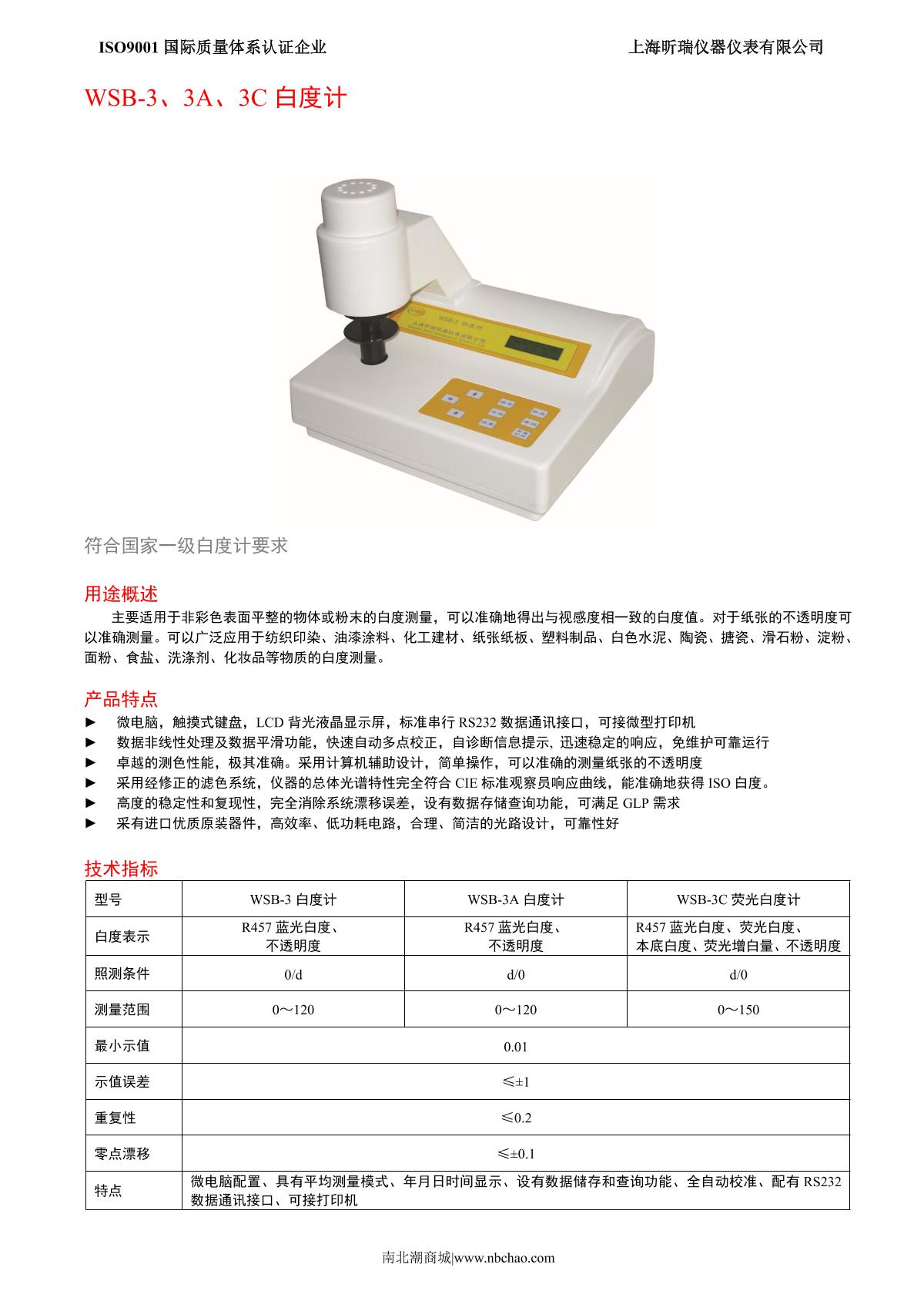 - 9QiWei WSB-1Y Whiteness meter (portable fluorescent) brochure