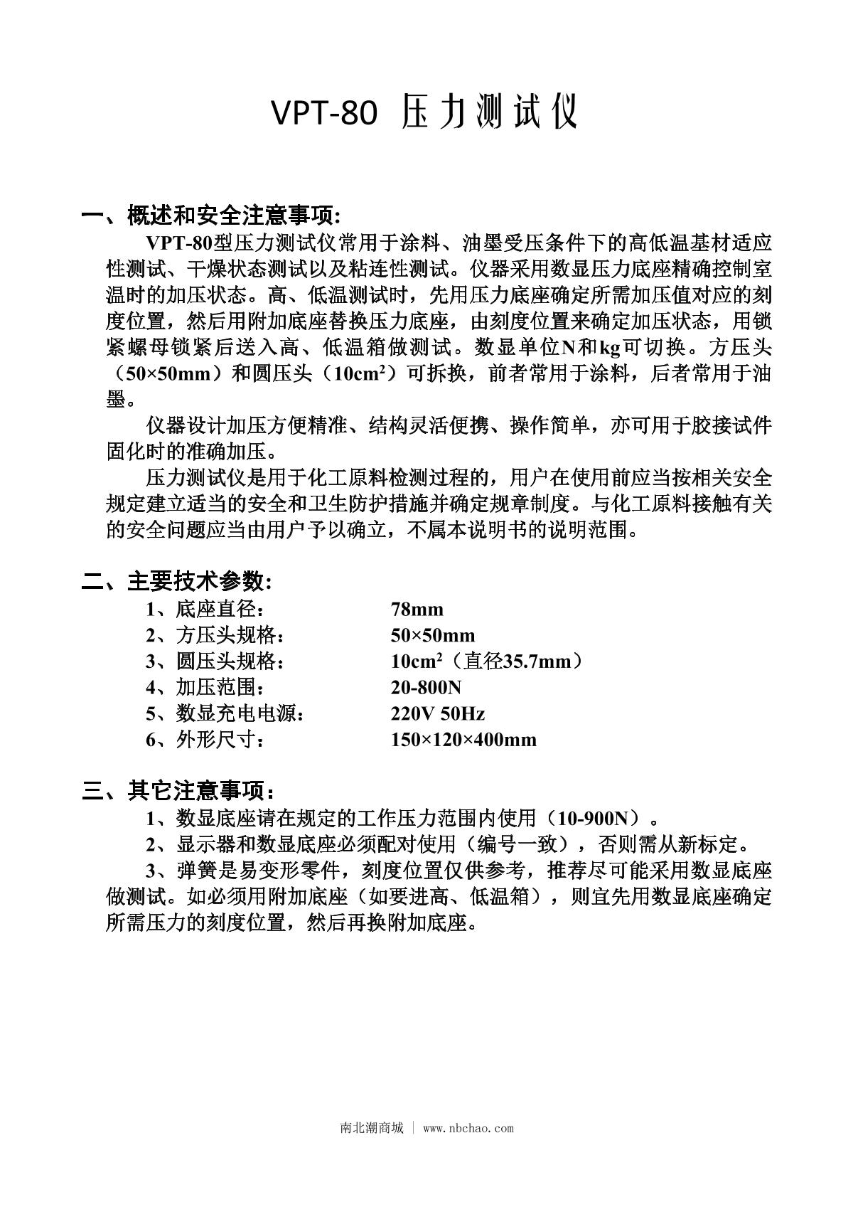 Moderner VPT-80 Stress testing instrument Manual,OI