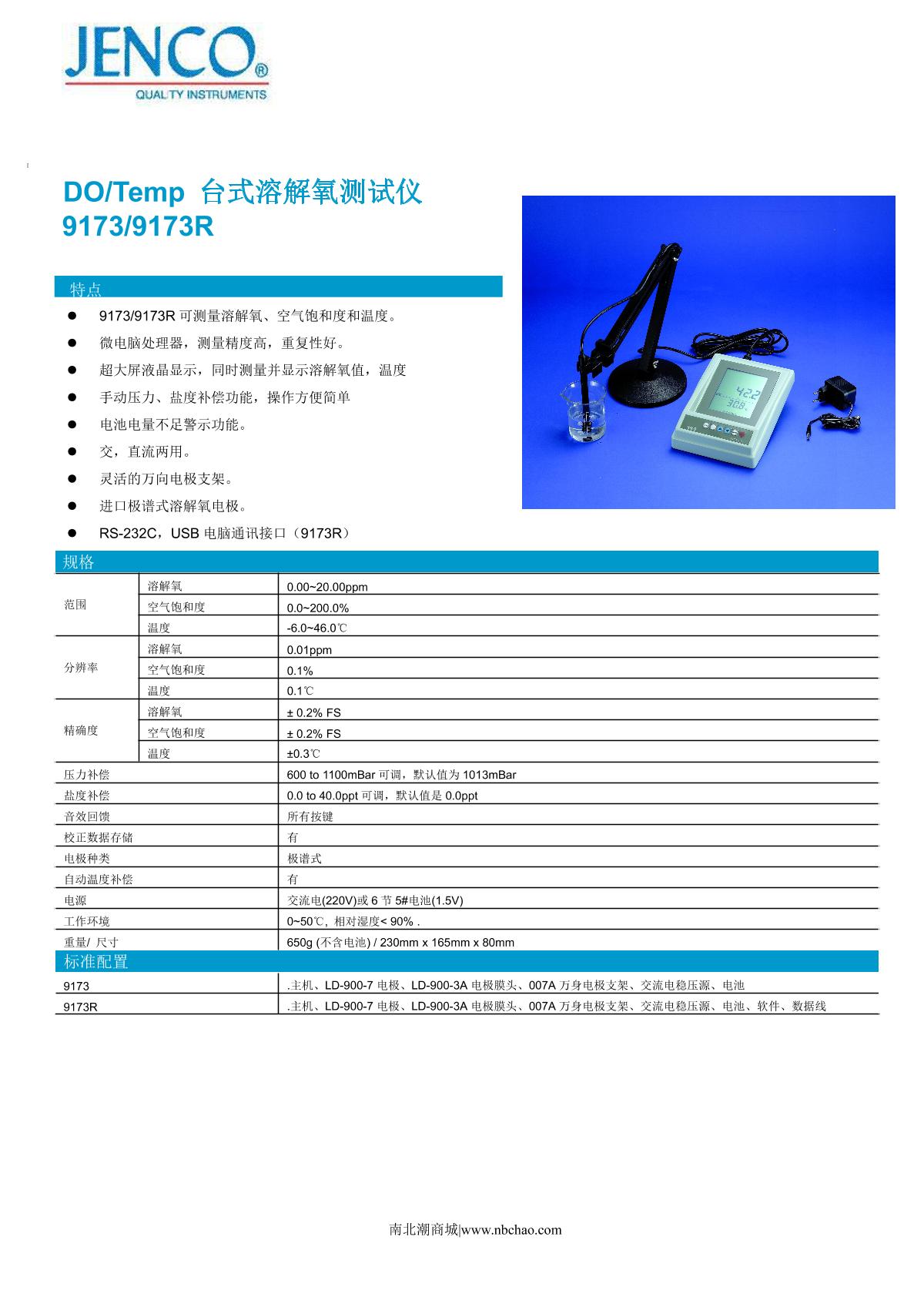 JENCO 9173R Dissolved oxygen (DO) Tester brochure