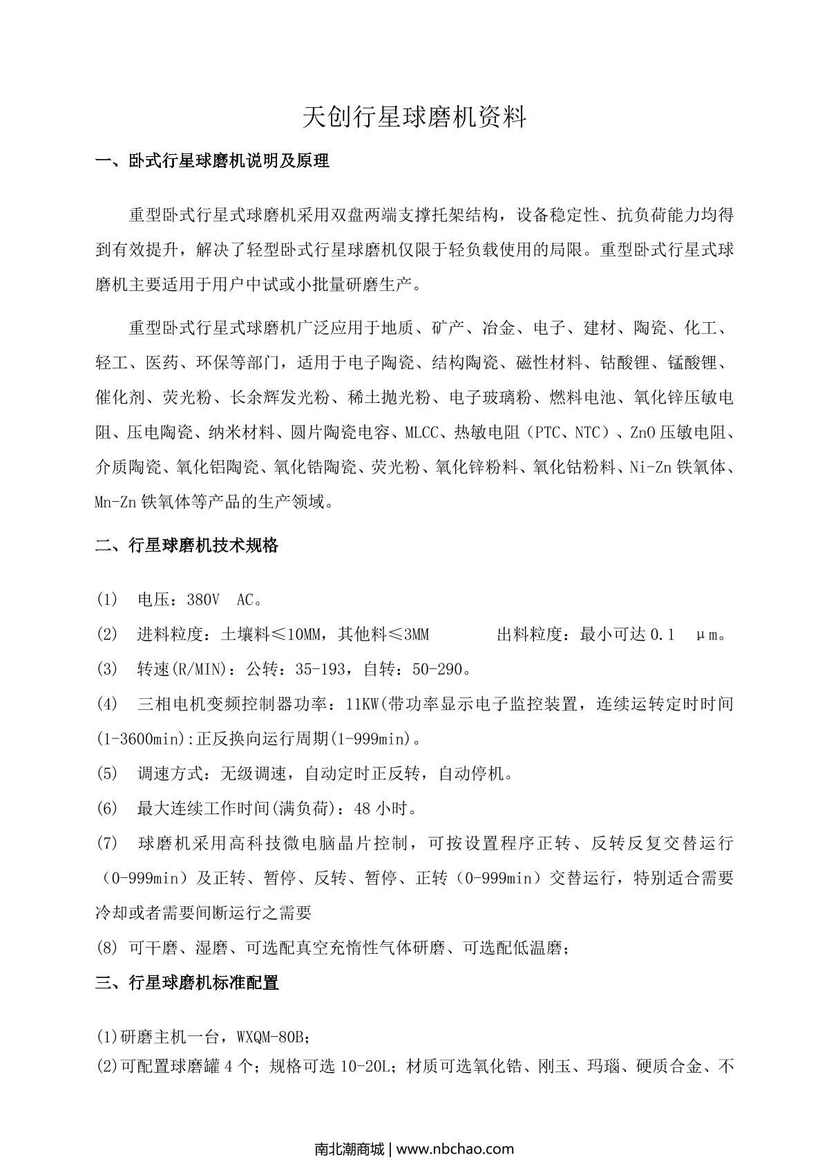 TENCAN Powder WXQM-80B Horizontal Planetary Ball mill brochure