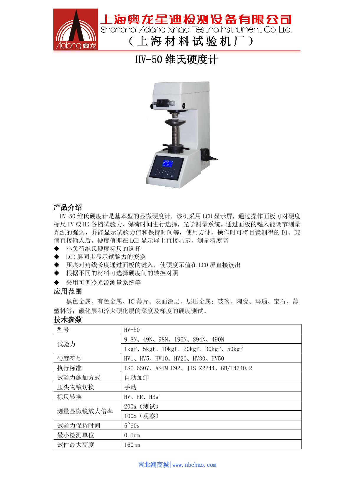 AoLongXingDi HV-50 Vickers Hardness Tester brochure