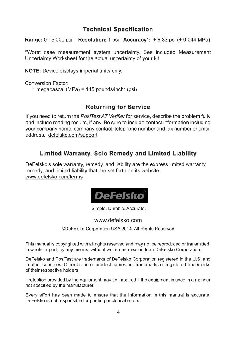 Defelsko PosiTest® AT Verifier Calibration machine Manual,OI