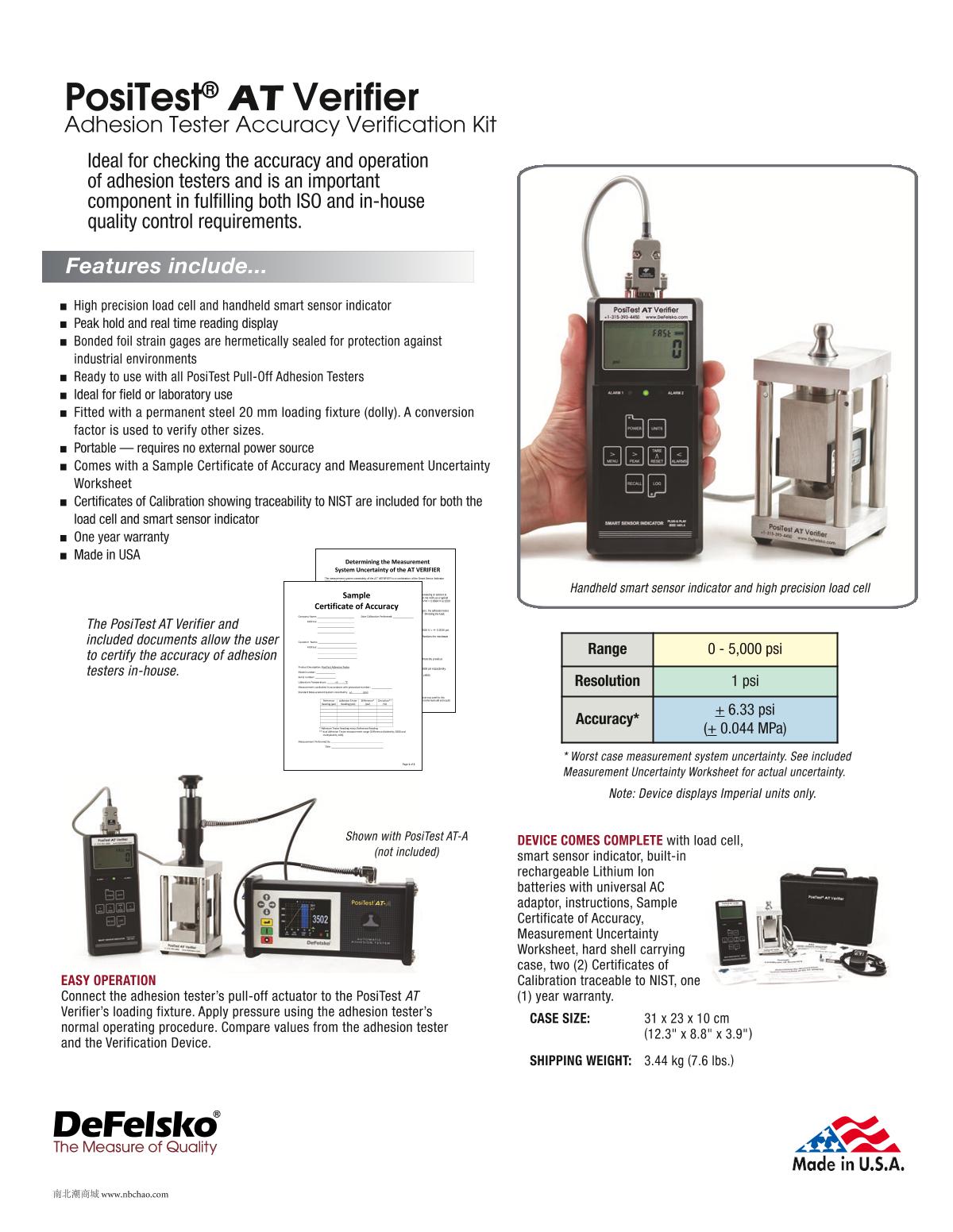 Defelsko PosiTest® AT Verifier Calibration machine brochure