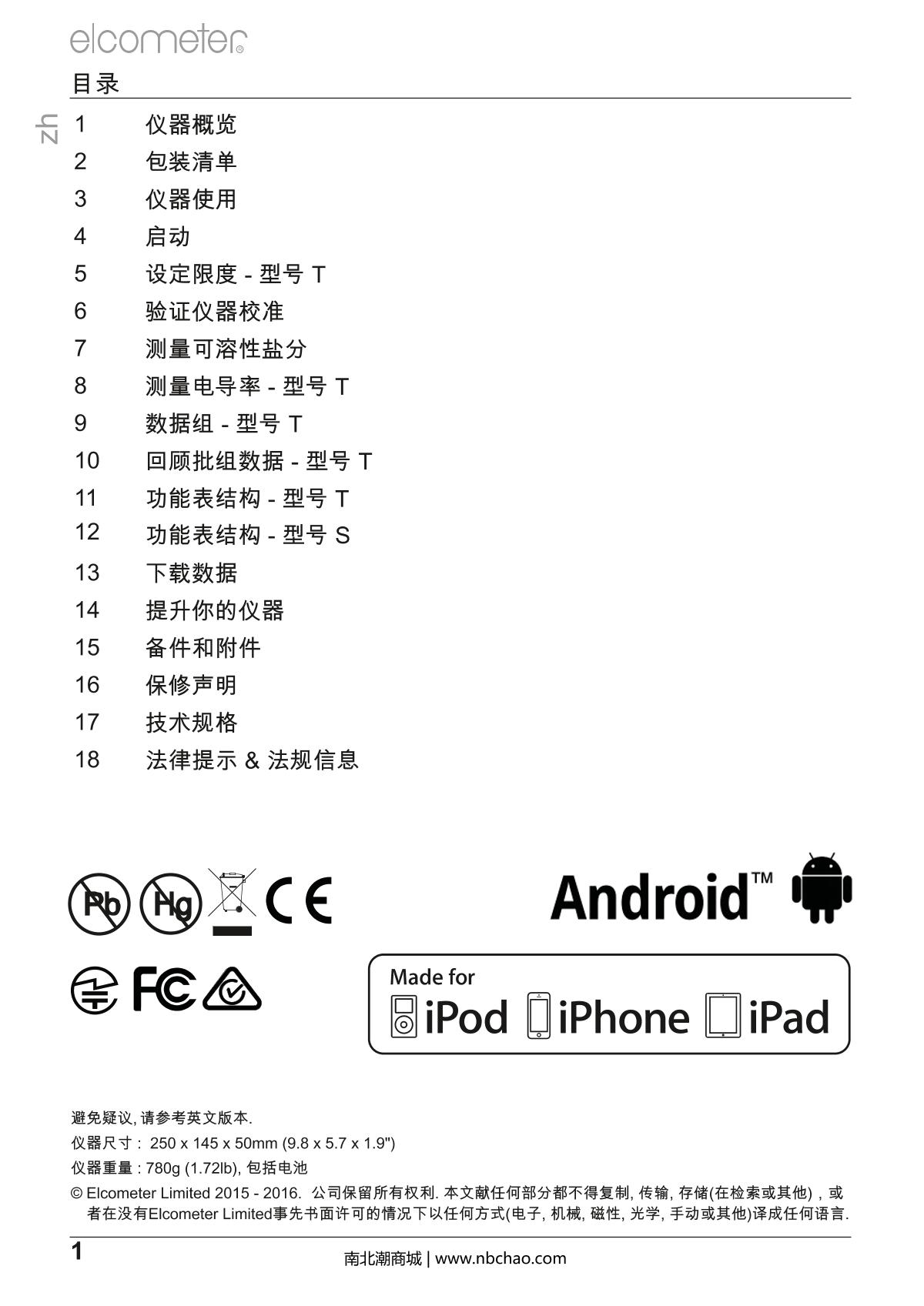 - 2Elcometer E130-S (standard) Soluble salt Detector Manual
