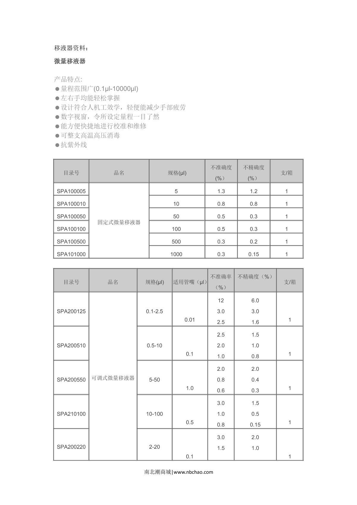 - 10LICHEN 5-50μl Single Channel Adjustable Micro Pipette brochure