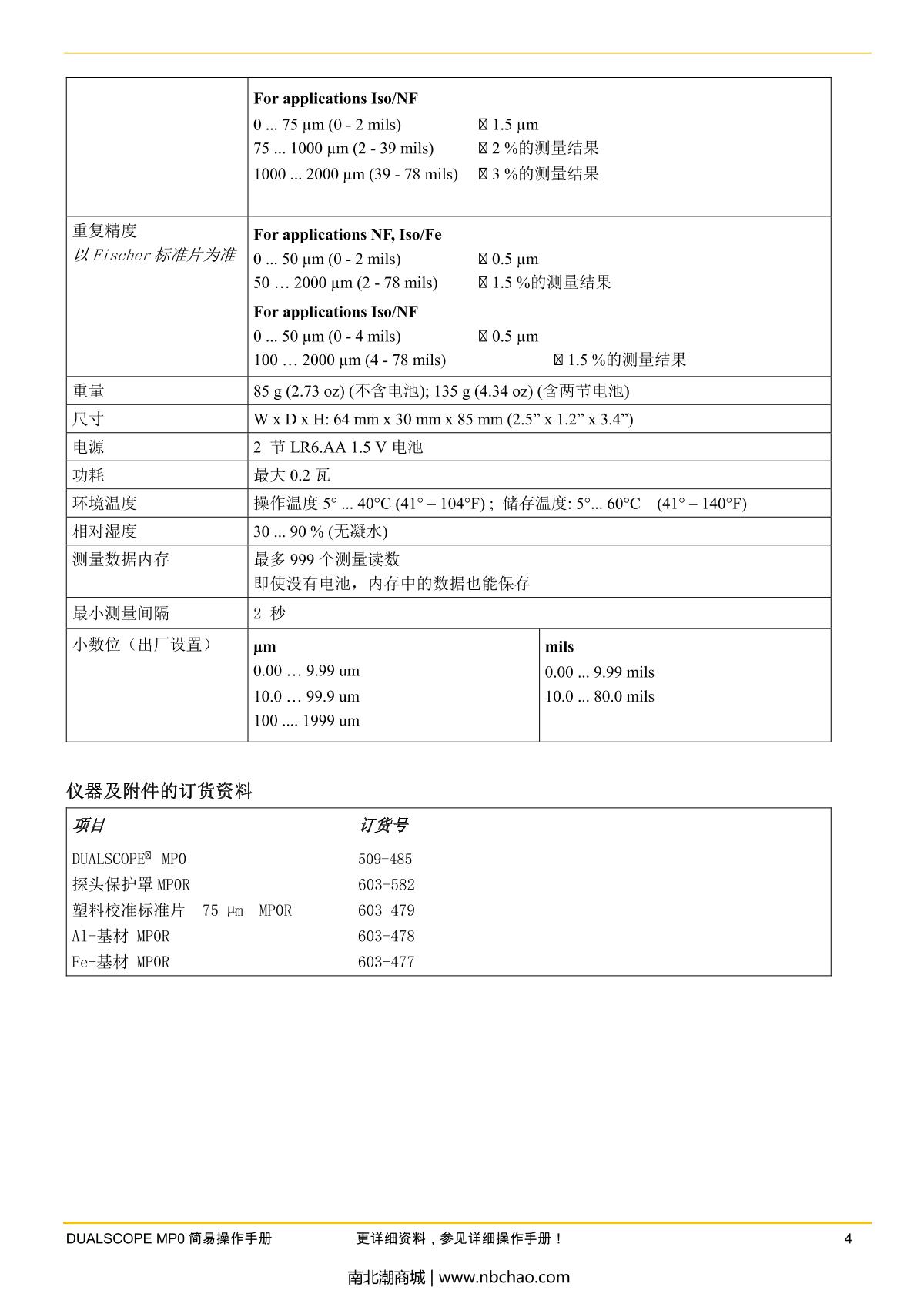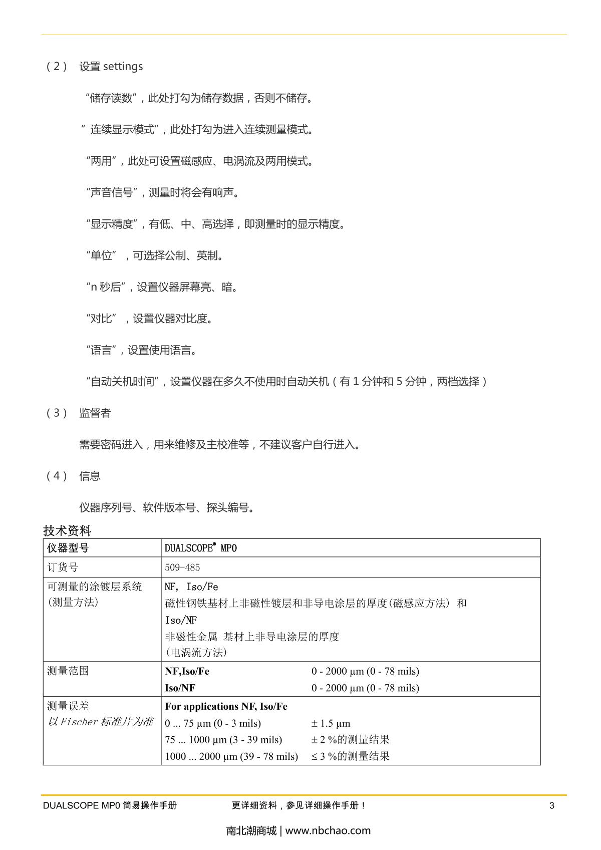 Fischer MP0 Mini platings Thickness Gauge Manual,OI