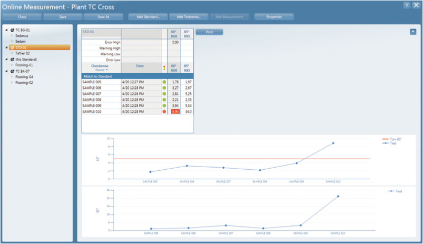 This statistical method not only shows the average but all statis-judge whether the difference in measurement is significant or how uniform the surface gloss is needed for your sample with Tikal data. You can define what you want to see: mean, standard deviation, range, min/max...