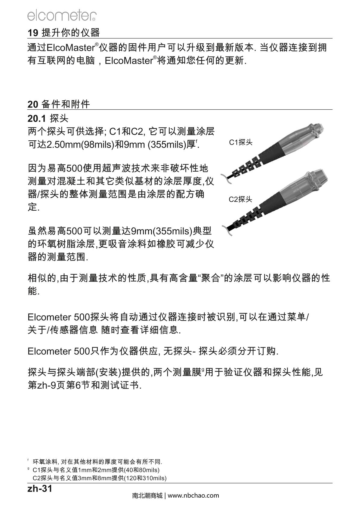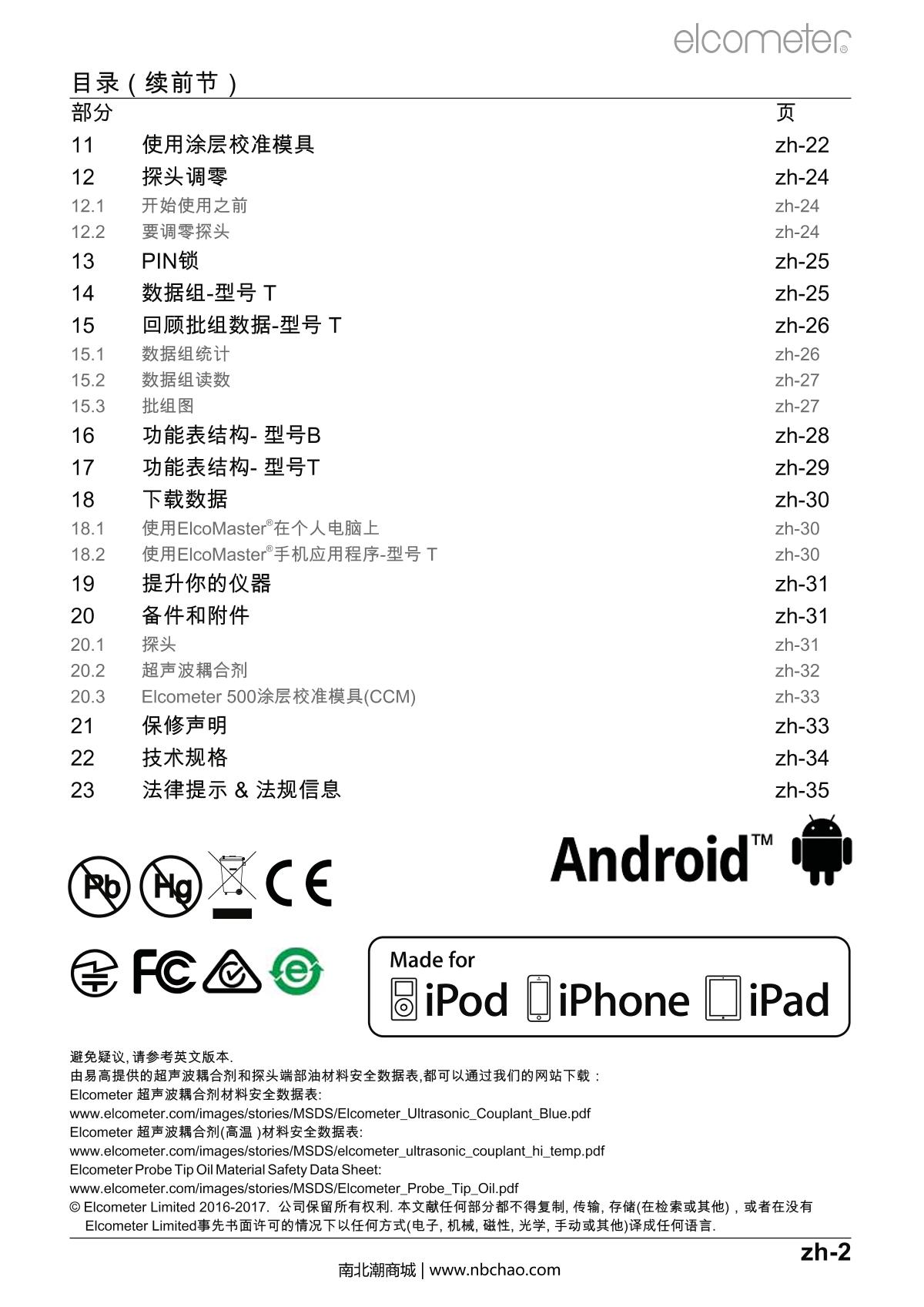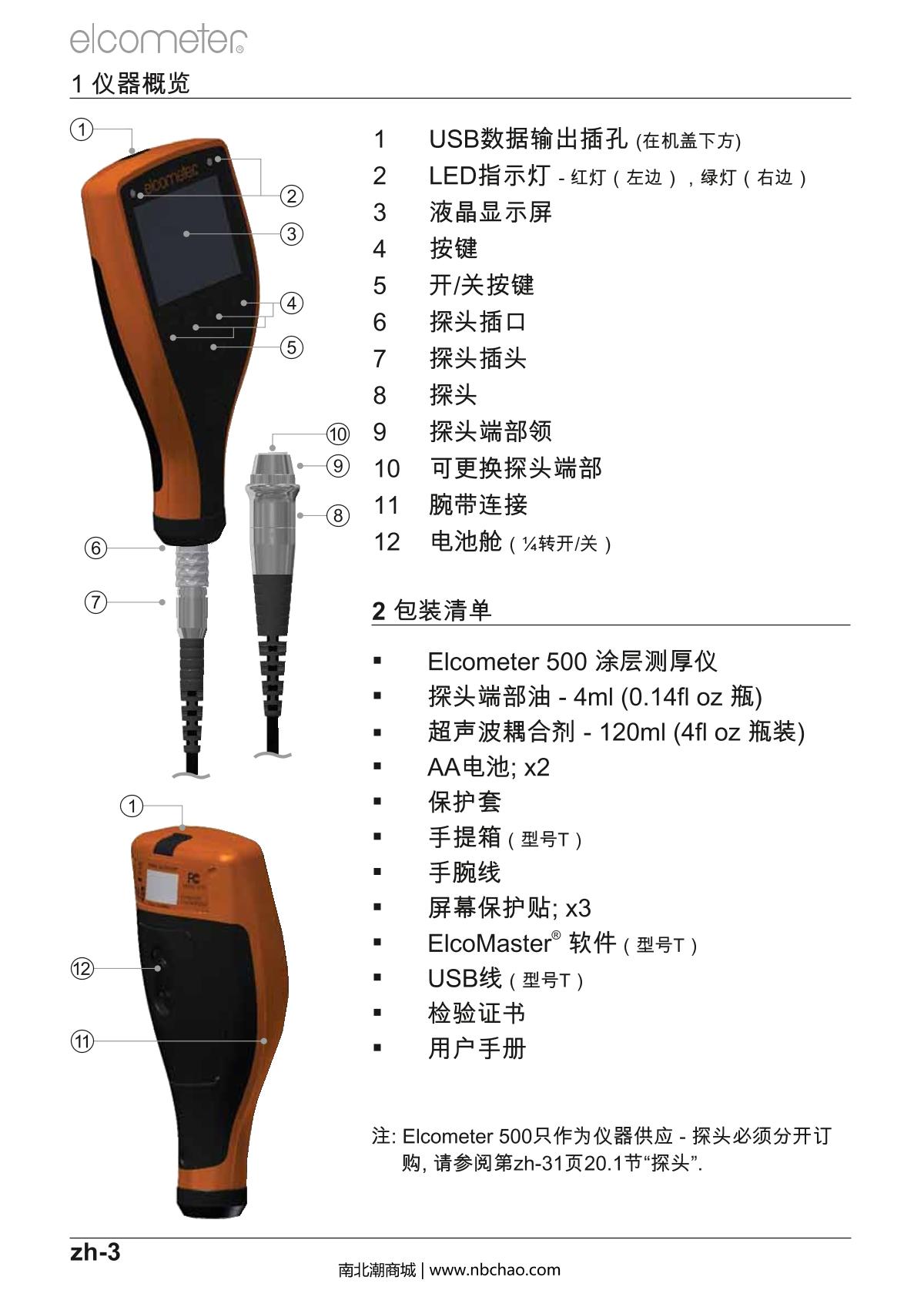 Elcometer A500C-B Coating Thickness Gauge Manual,OI